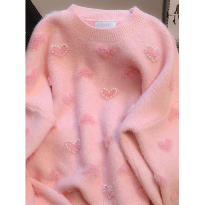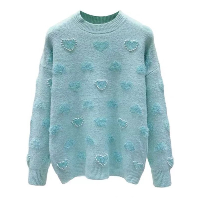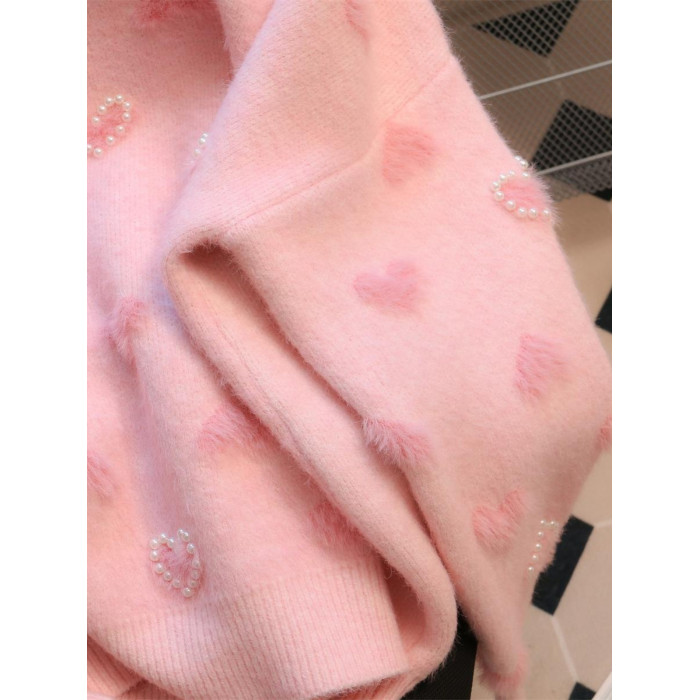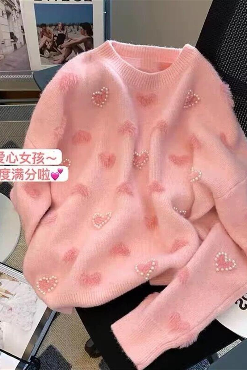 愛心毛衣女秋冬季加絨加厚高中初中學生15嵗13大童軟糯針織打底衫