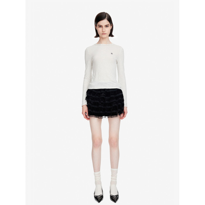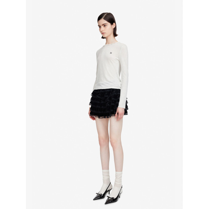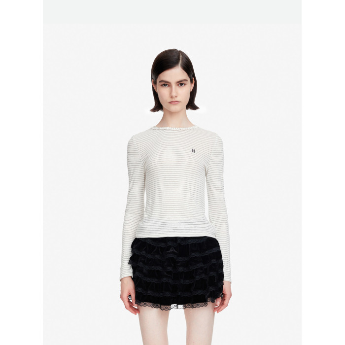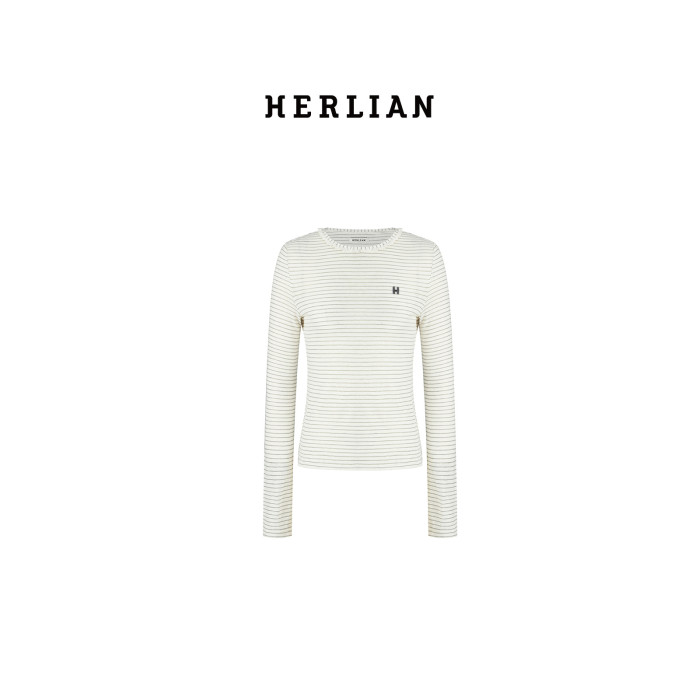 HERLIAN 秋季新品女士蕾絲領條紋長袖打底衫