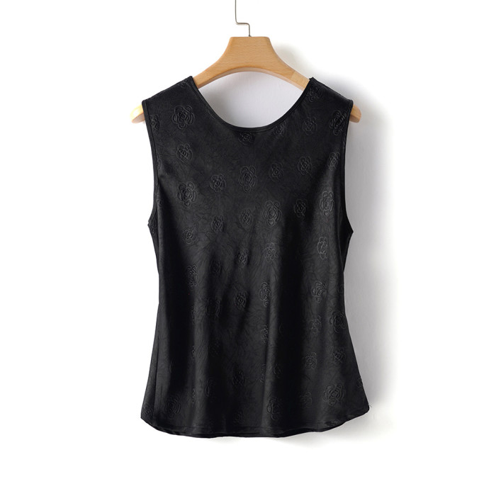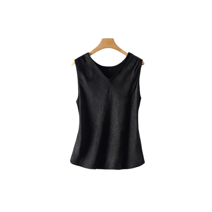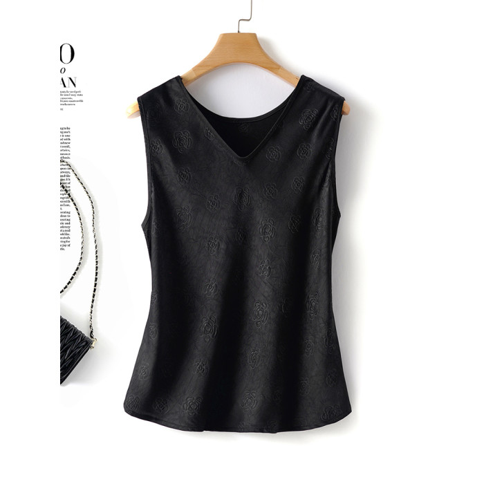 黑色v領真絲背心吊帶打底衫女2025夏新款薄款提花高檔桑蠶絲小衫