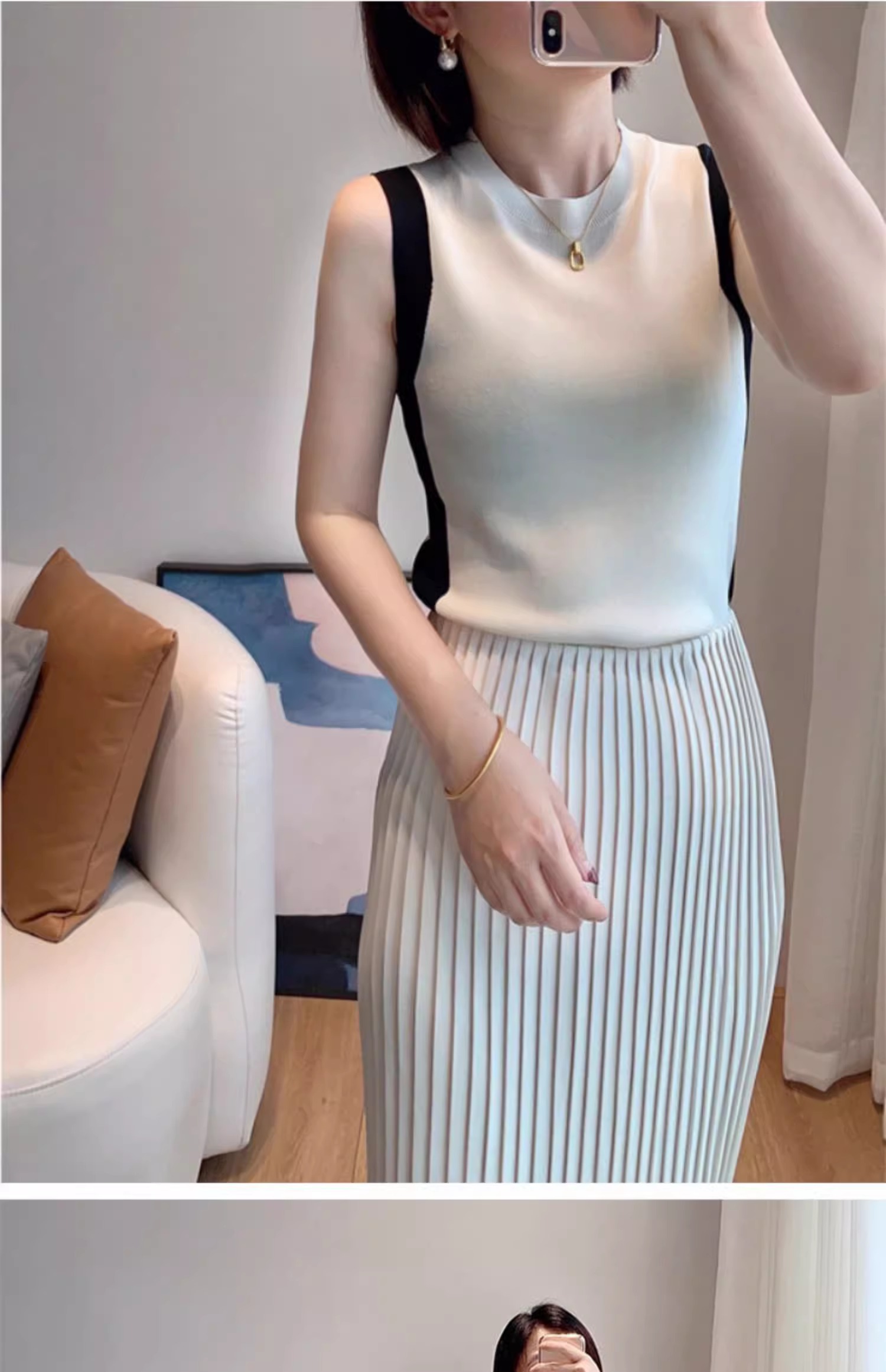 ROUJE KORA天絲針織背心女2025夏高級打底衫內搭吊帶冰絲無袖上衣