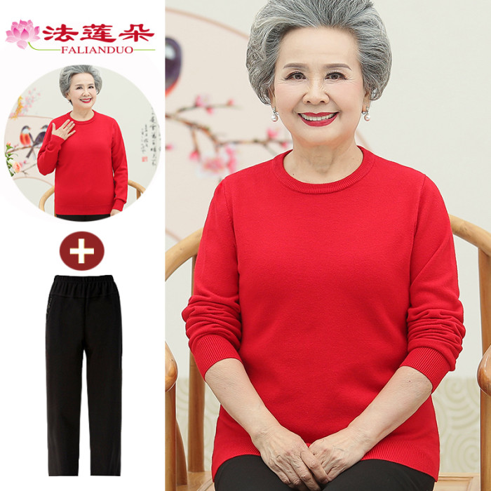 媽媽春秋內搭上衣服中老年人奶奶低領毛衣老太太女套頭打底衫純色