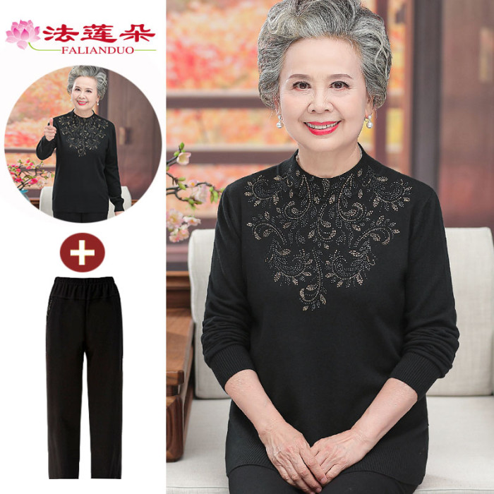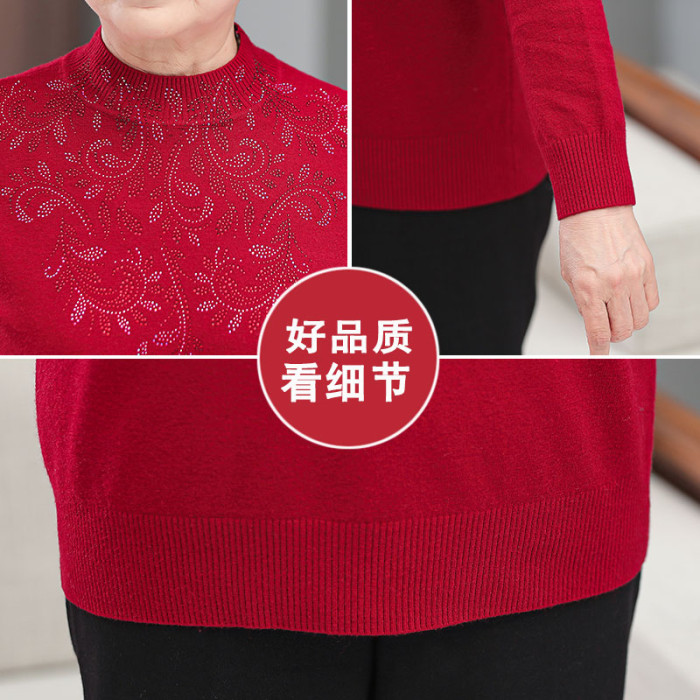 中老年人女媽媽春秋裝半高領打底衫薄款毛衣老太太奶奶純色針織衫