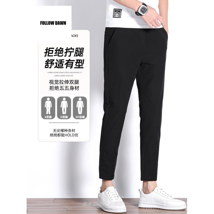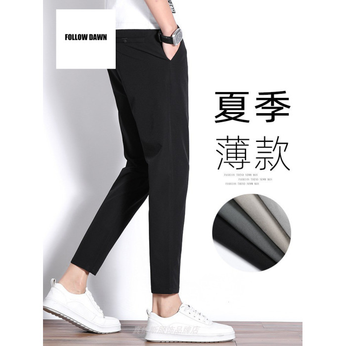 男士休閒褲百搭修身西褲冰絲九分褲男生薄款2025夏季直筒小腳褲子