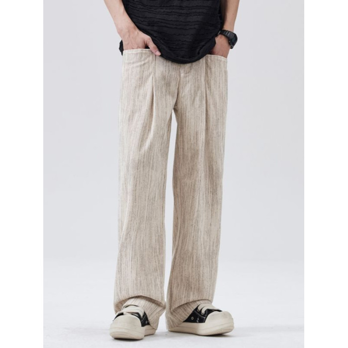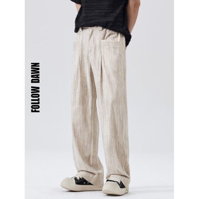 2025春季新款華夫格紋理感高街休閒褲寬松垂感直筒濶腿西褲