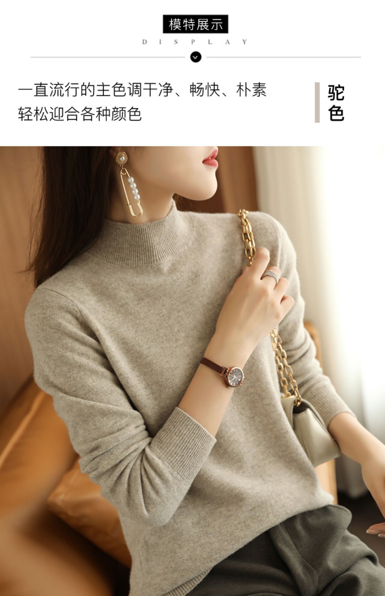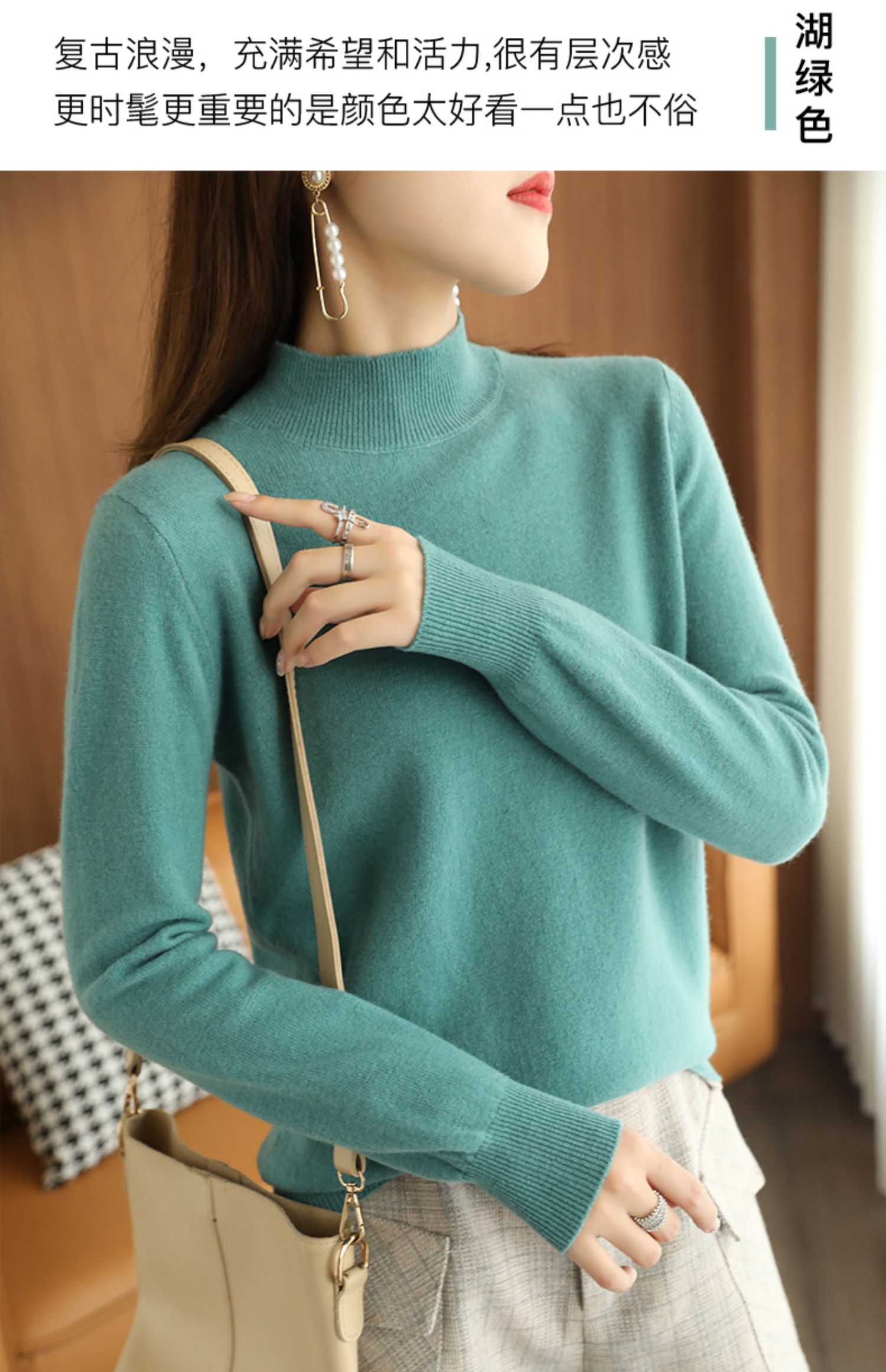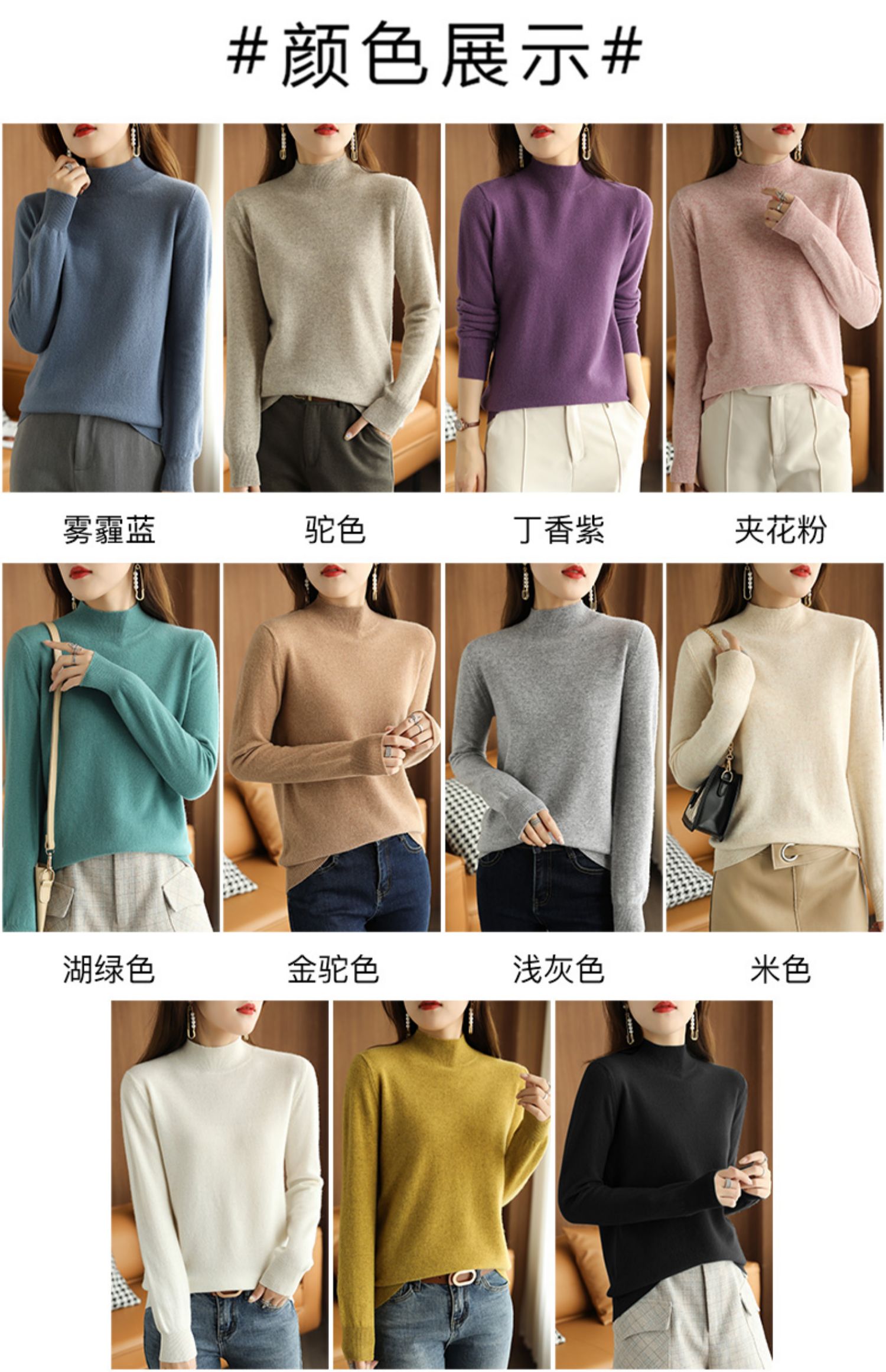 優雅氣質半高領毛衣女寬松顯瘦春秋冬薄款內搭長袖黑色針織打底衫