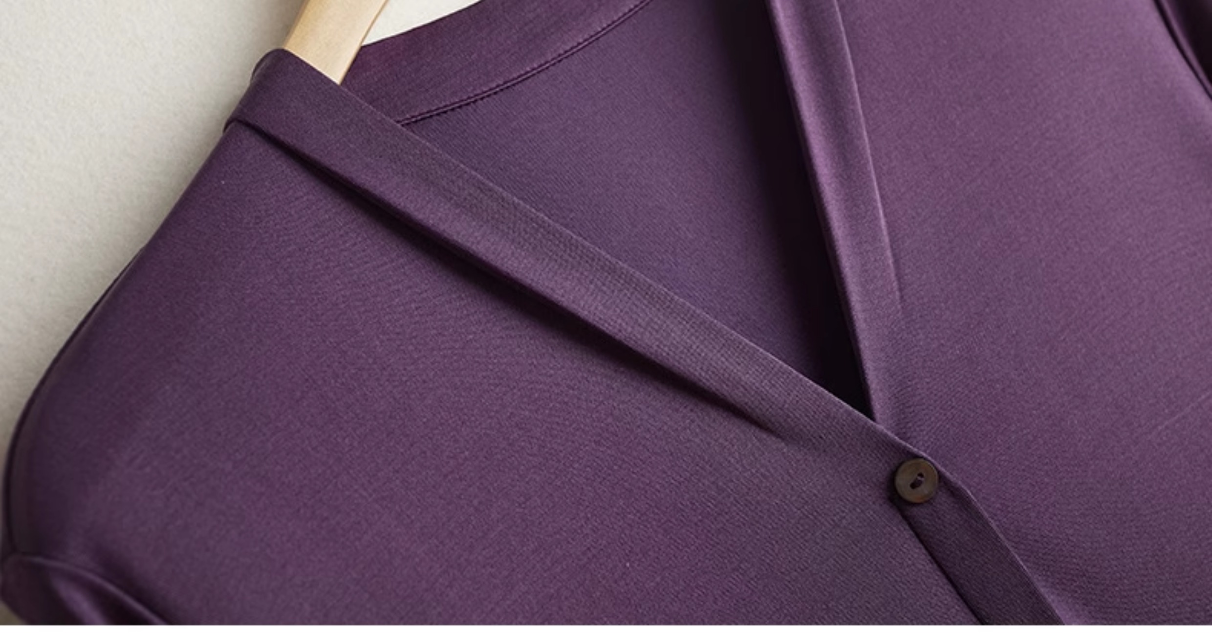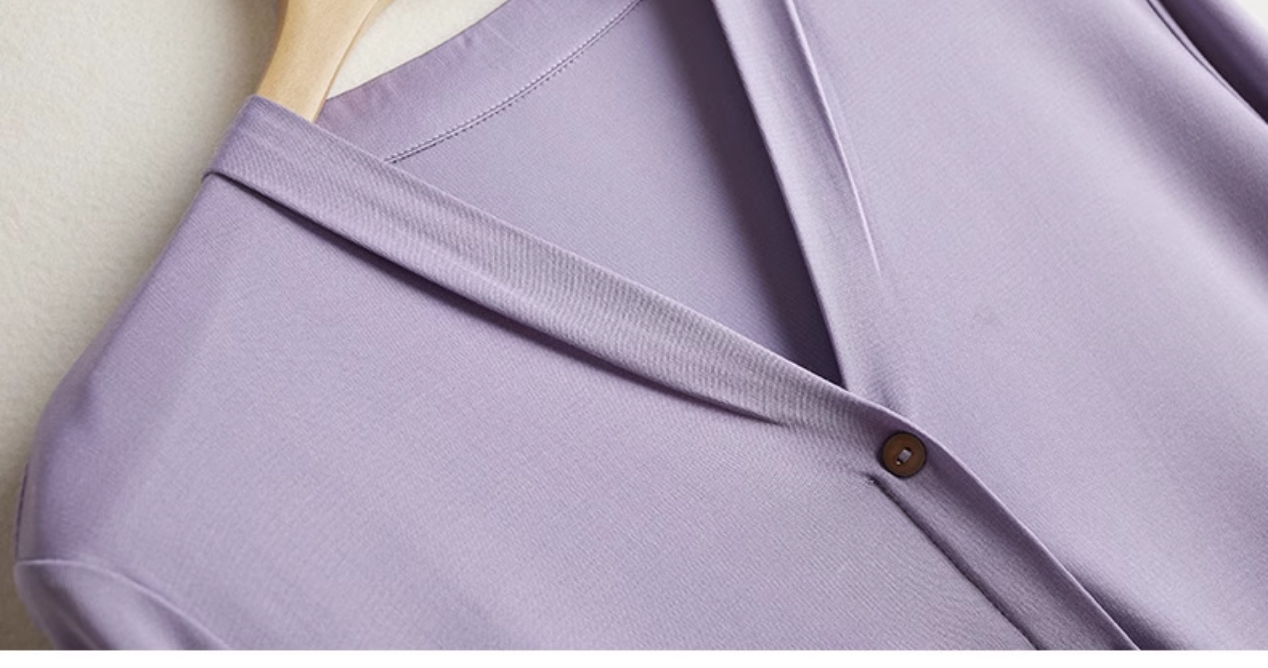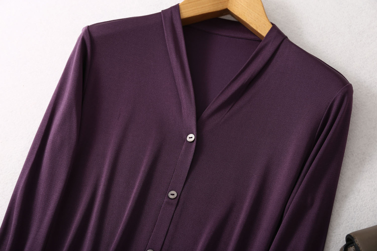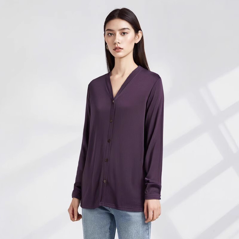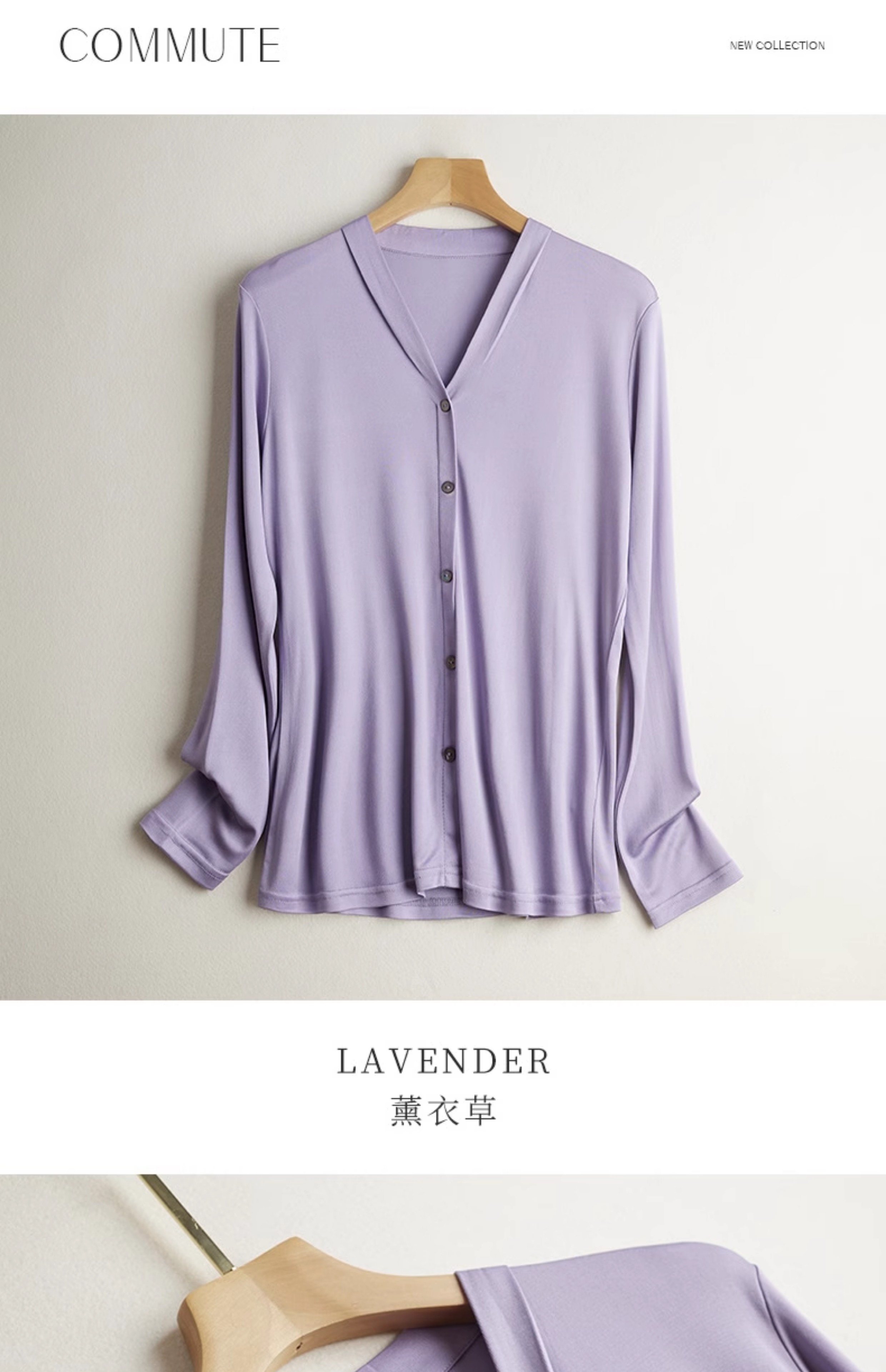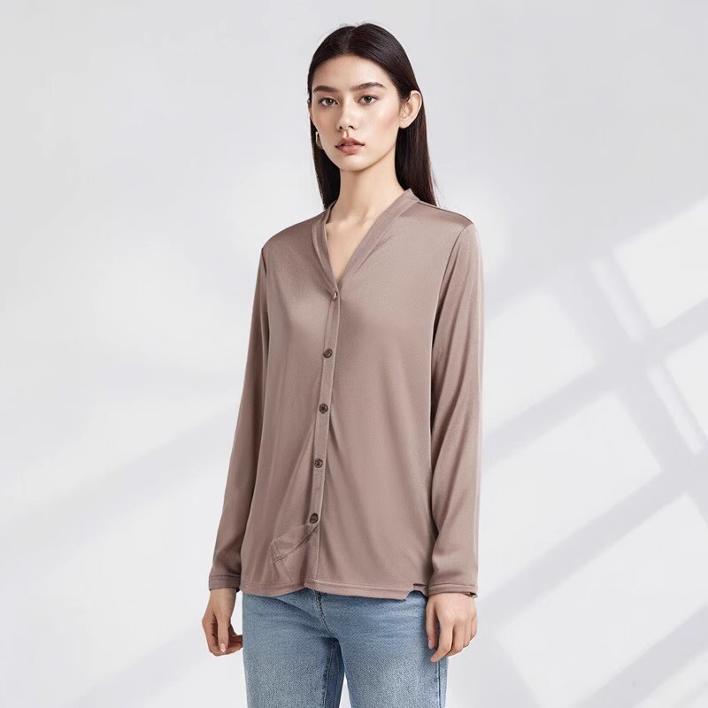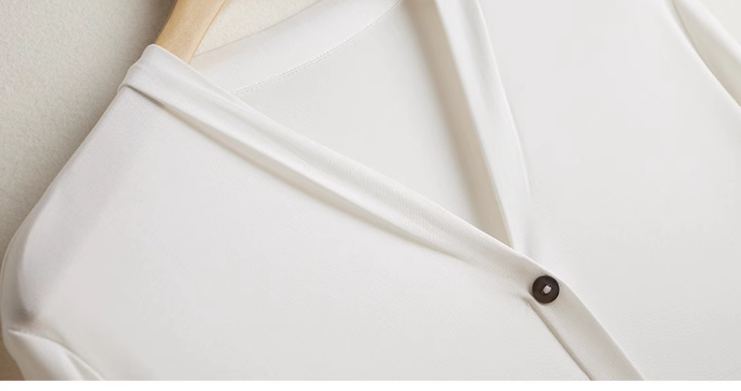 雙面針織桑蠶絲長袖打底衫黑色單排鈕釦外穿V領套頭衫真絲肌底衣