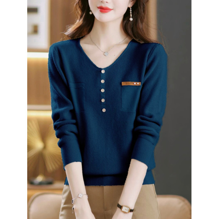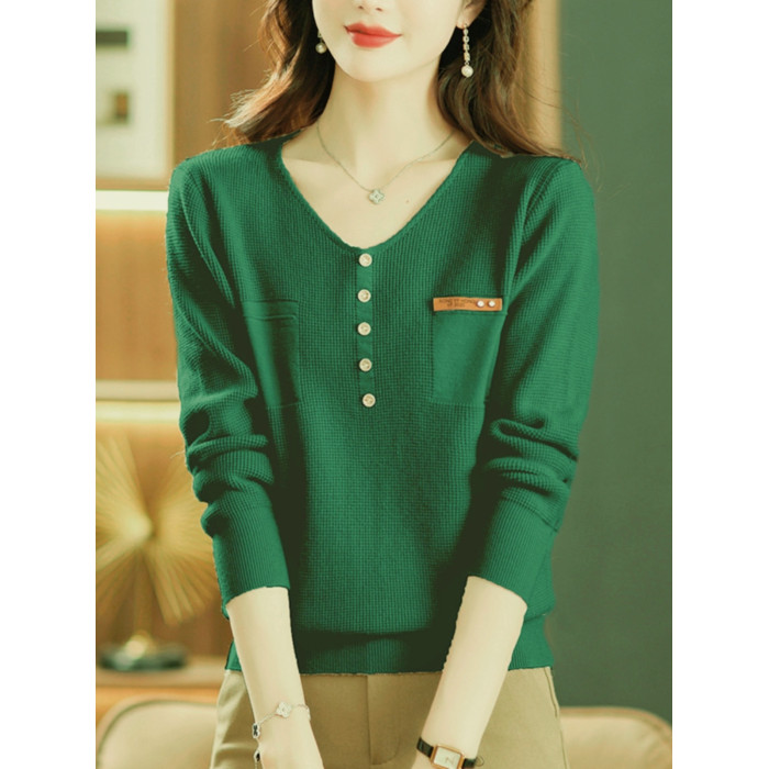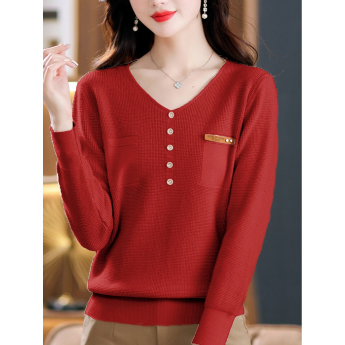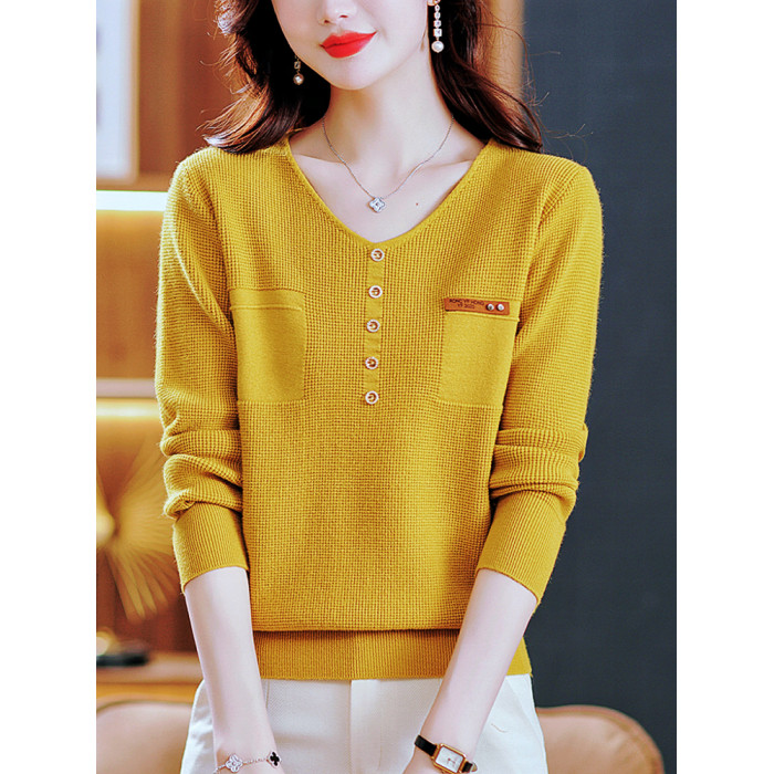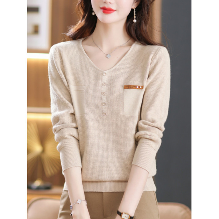 春裝2025新款薄毛衣洋氣打底衫外穿時尚V領中年女士春秋長袖上衣