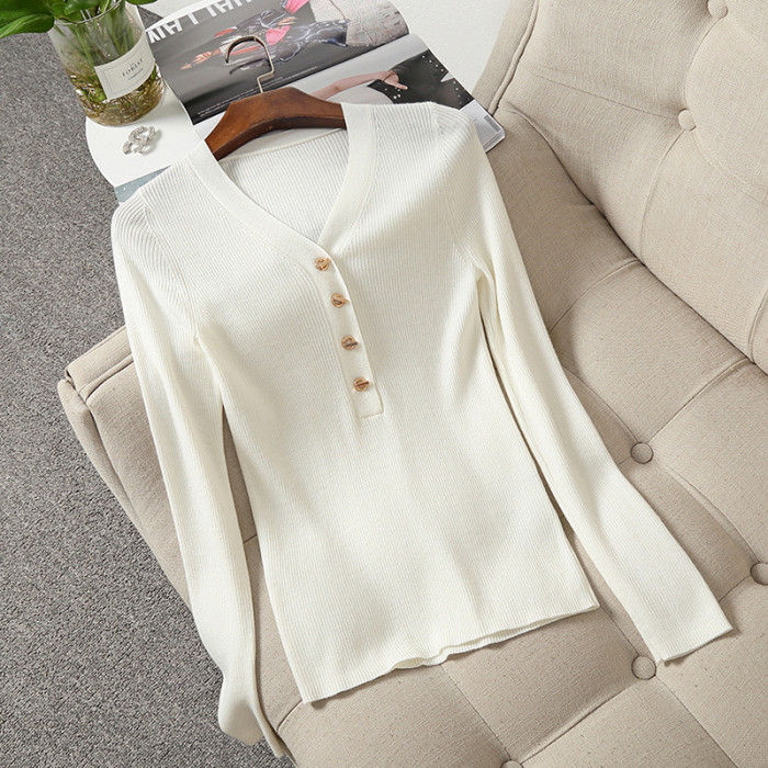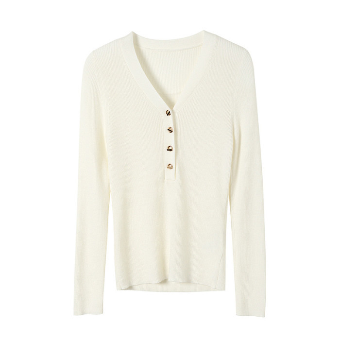 高級精品2025春季新款金屬釦V領外穿羊毛針織衫秋冬百搭打底衫女