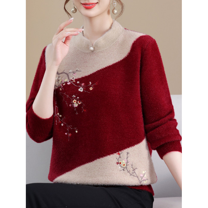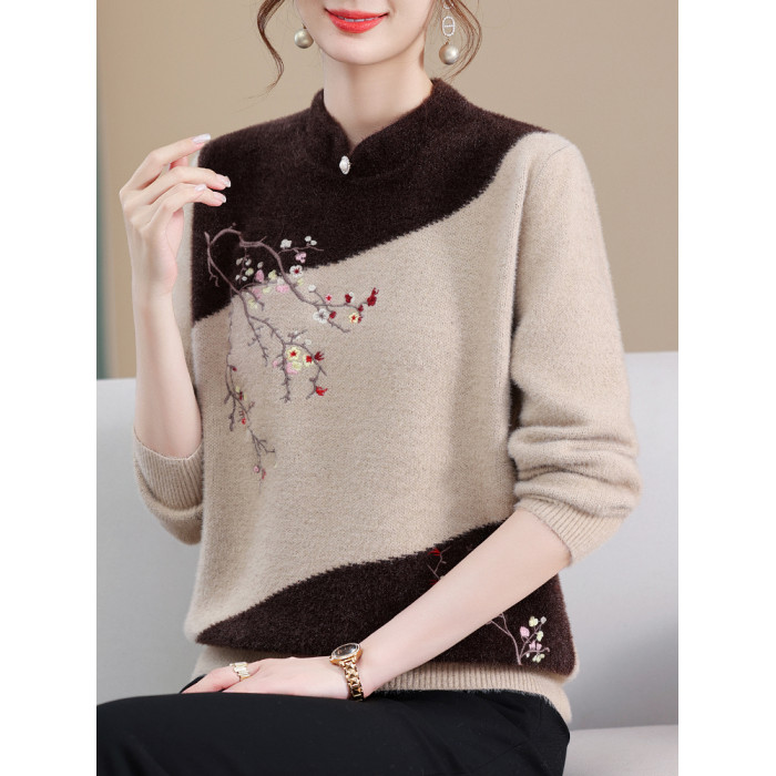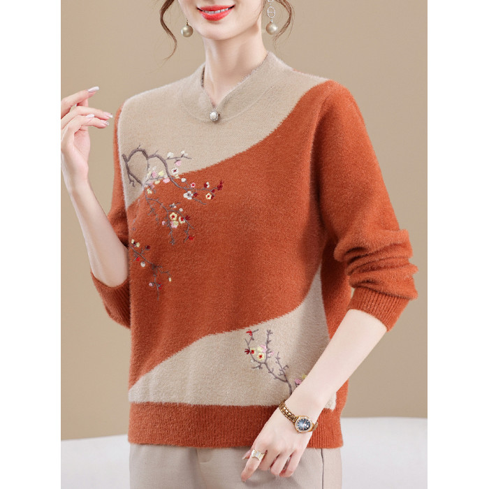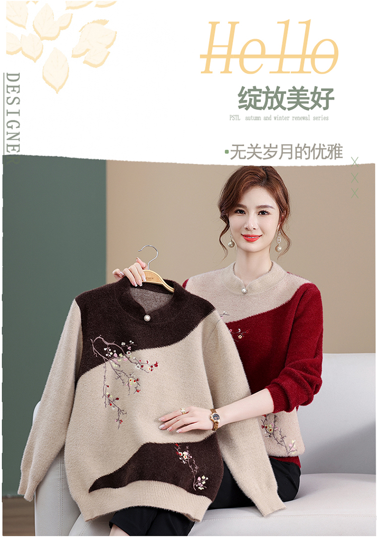 2024新款媽媽秋冬裝毛衣女洋氣打底衫上衣服中老年春秋季加絨套裝