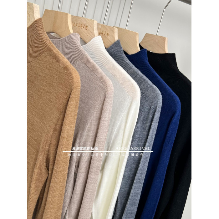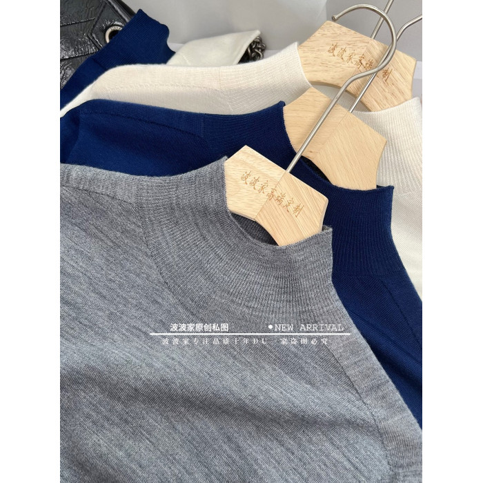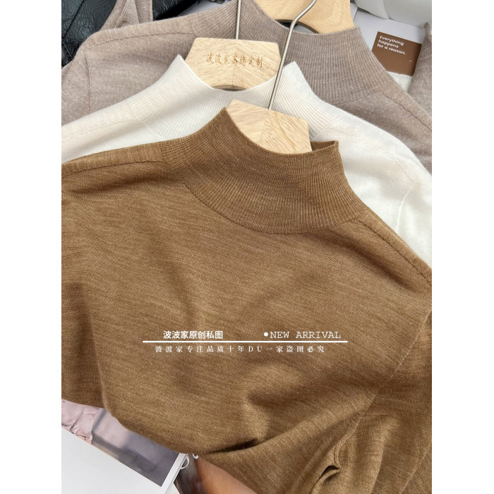 高貨無縫一體可機洗春秋冬半高領100%羊毛針織衫打底衫女內搭毛衣