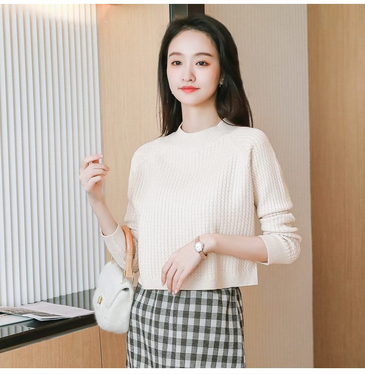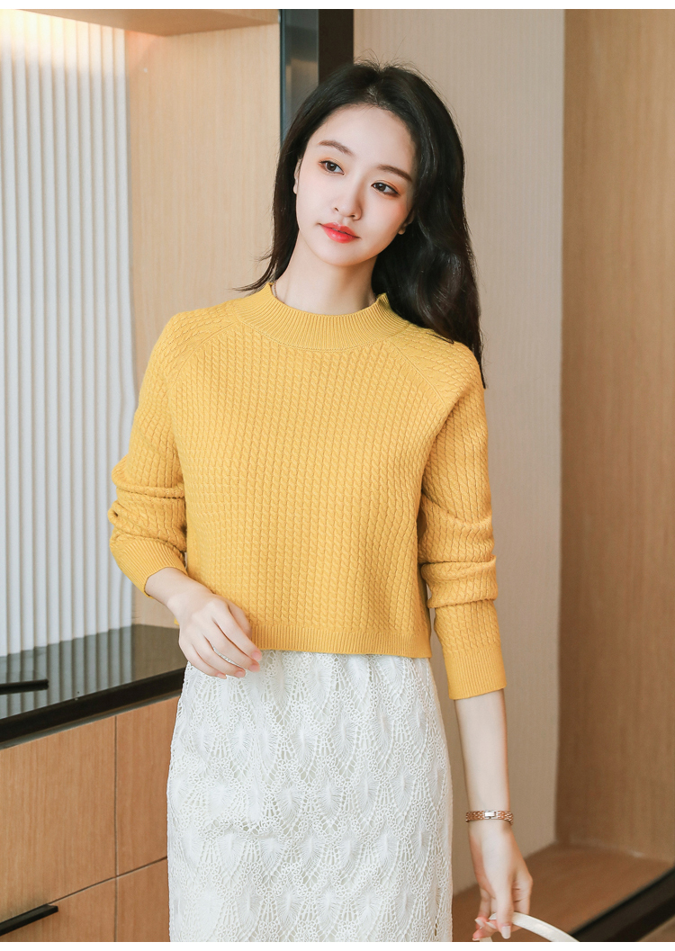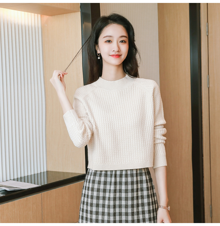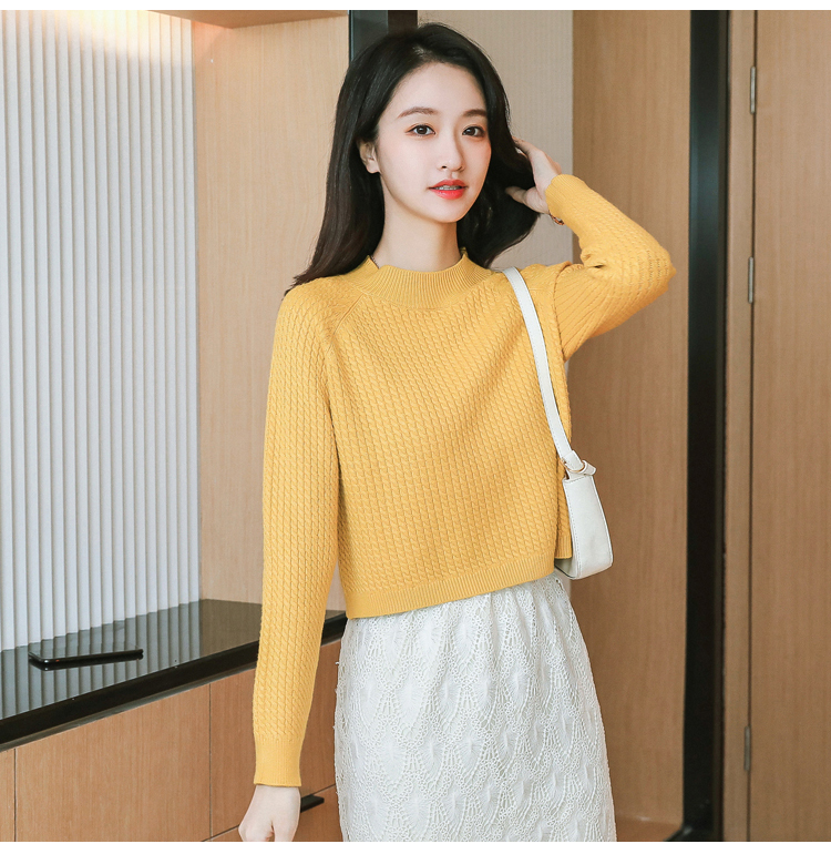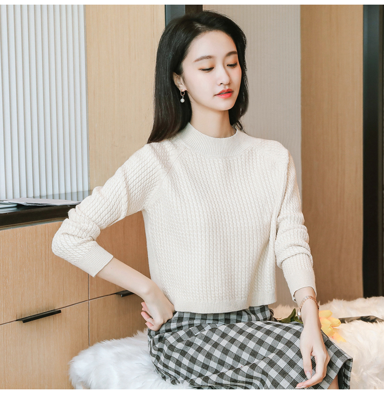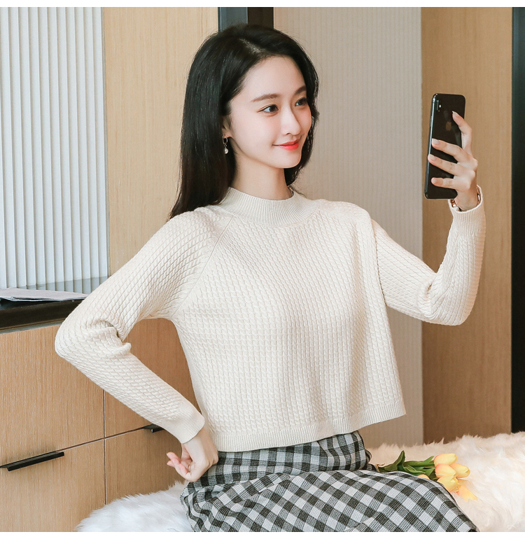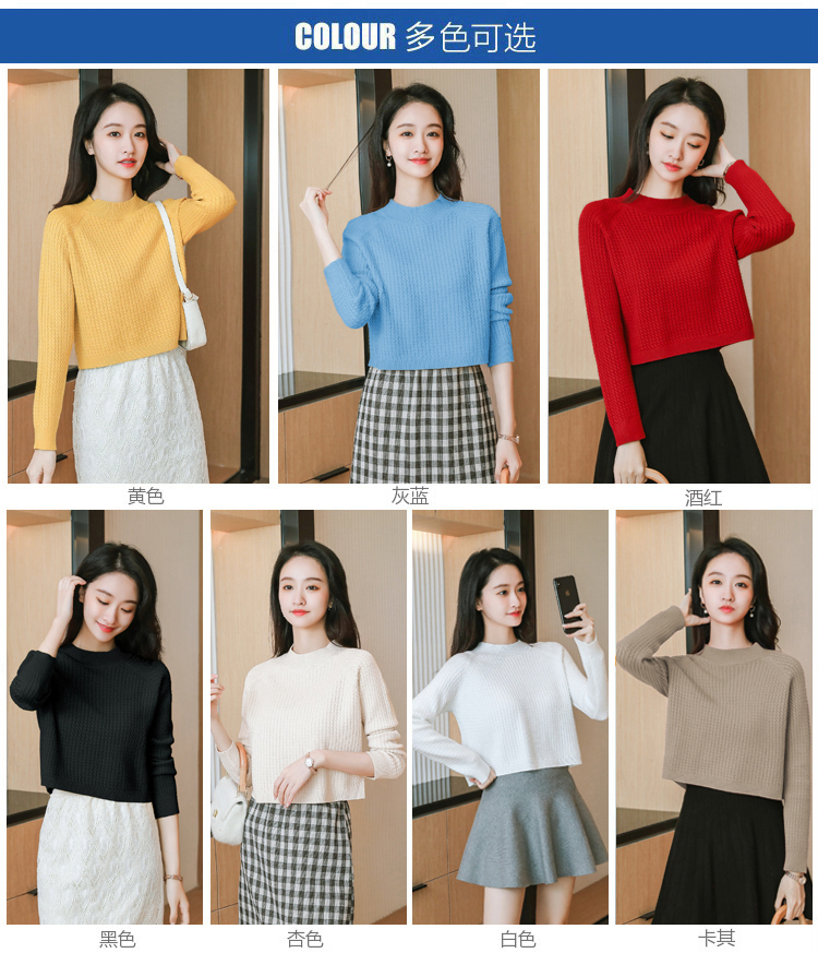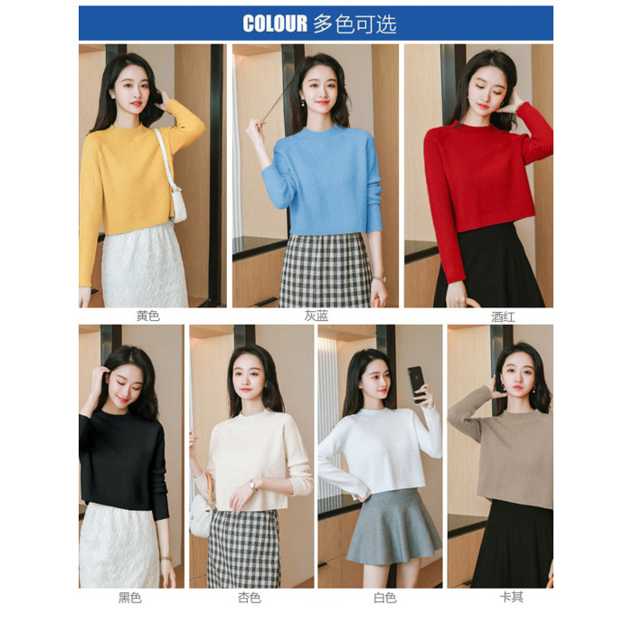 半高領短款毛衣女加厚秋冬新款女裝寬松小個子高腰中領針織打底衫