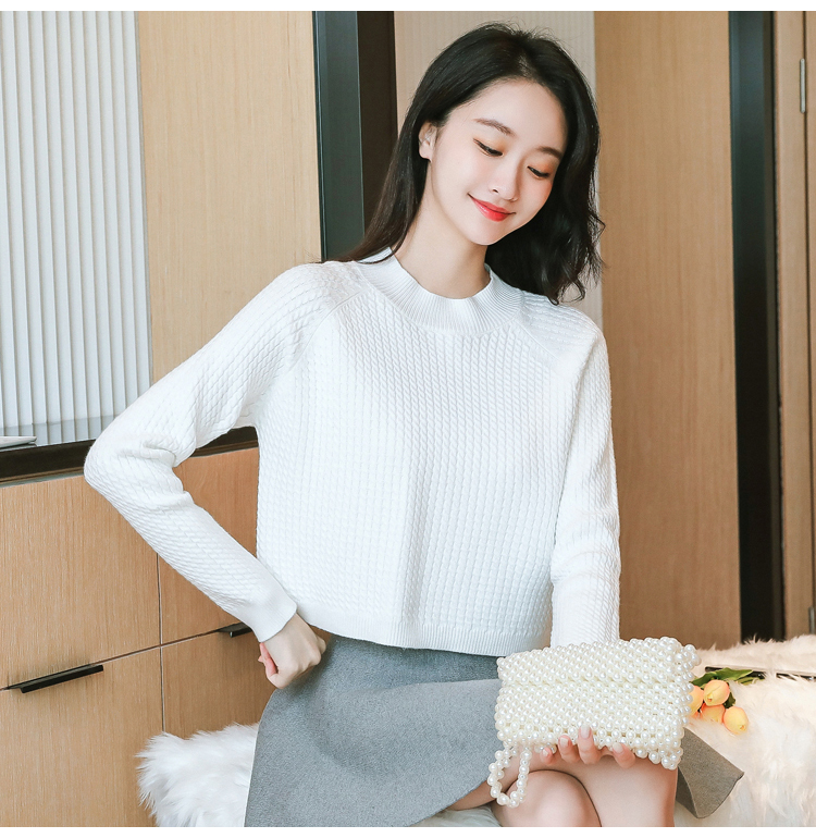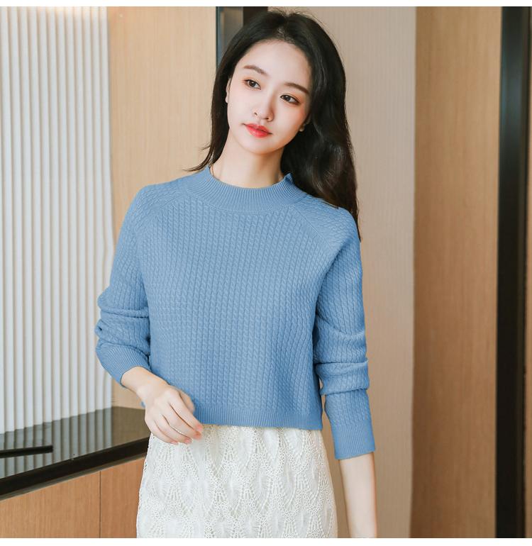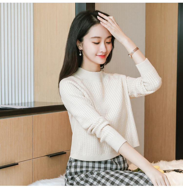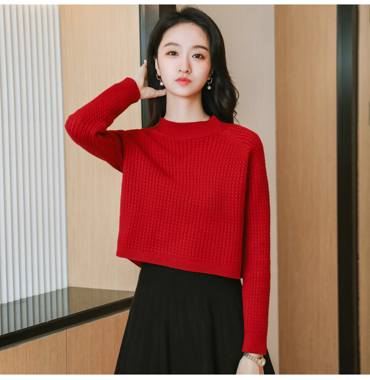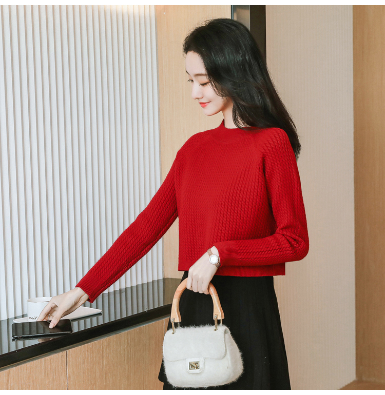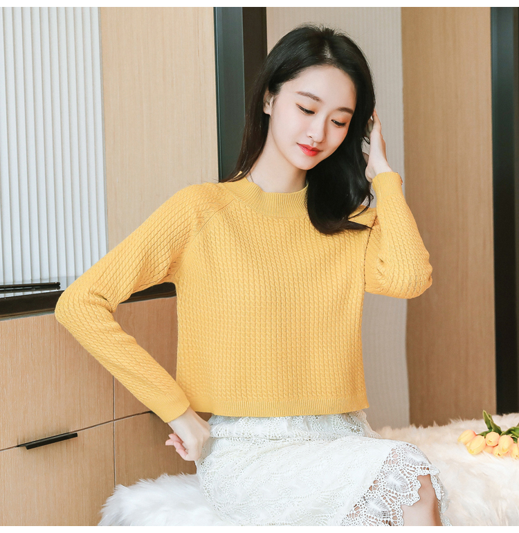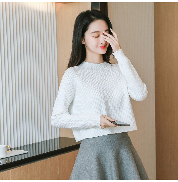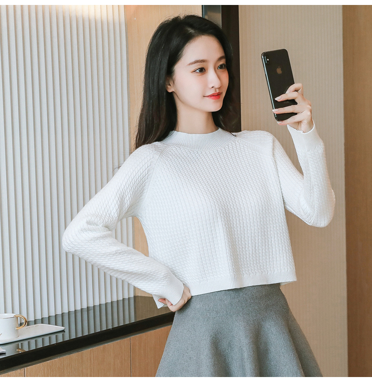 半高領短款毛衣女加厚秋冬新款女裝寬松小個子高腰中領針織打底衫
