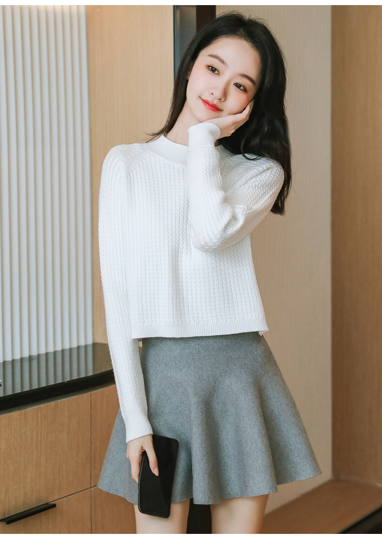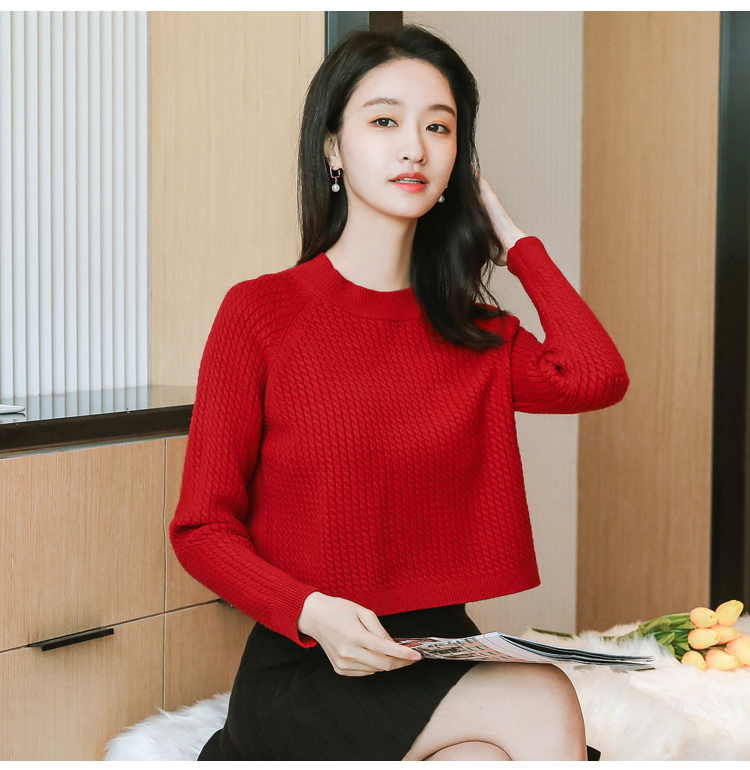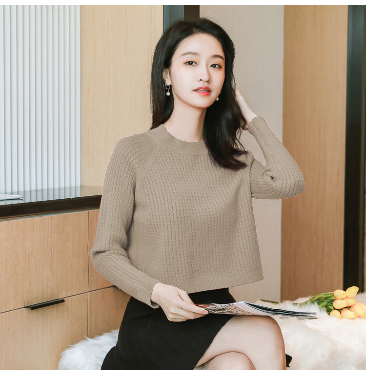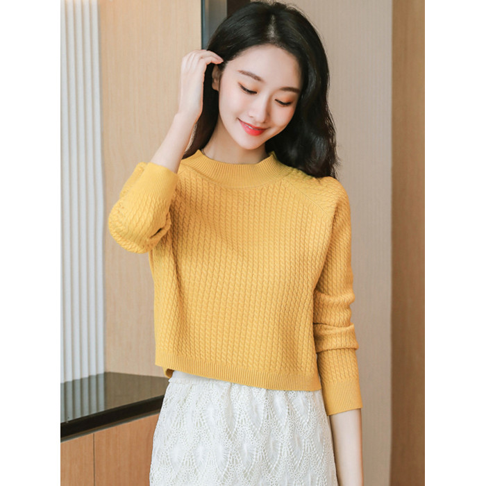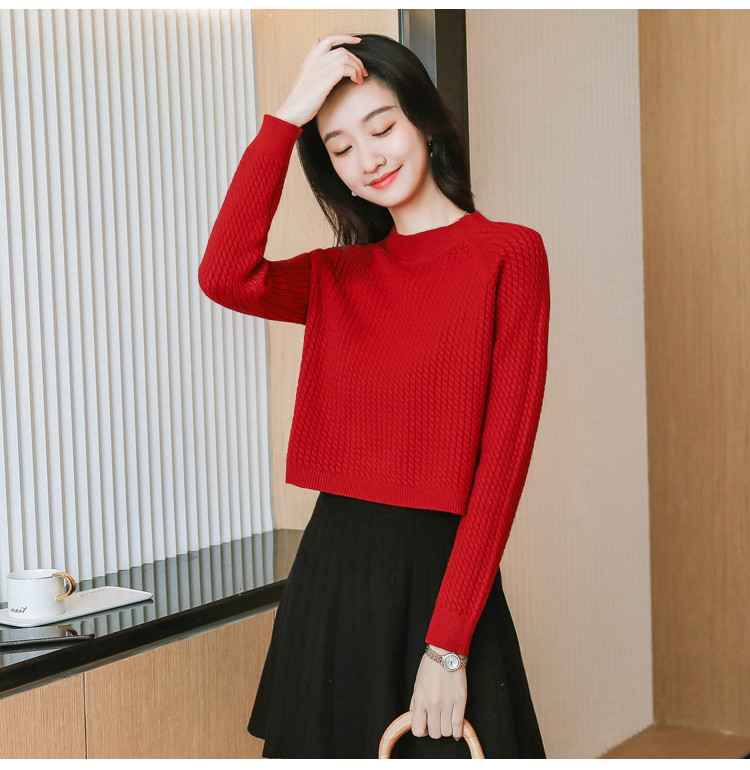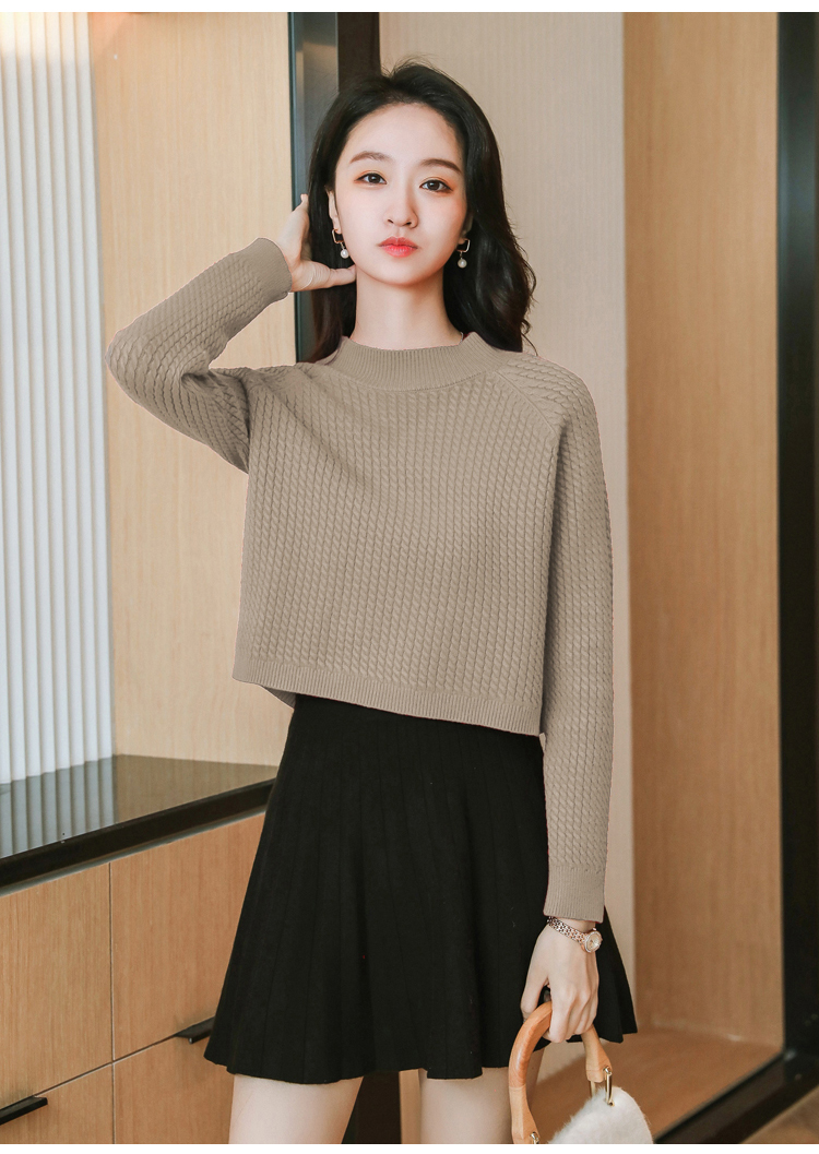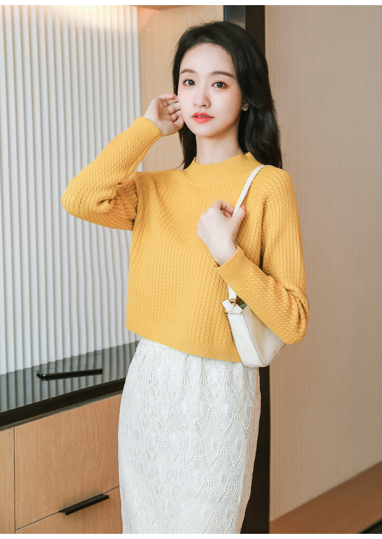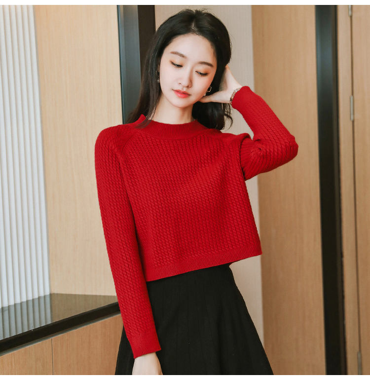 半高領短款毛衣女加厚秋冬新款女裝寬松小個子高腰中領針織打底衫