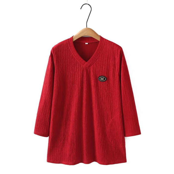 230斤特大碼胖媽媽春秋打底衫中年加肥長袖小衫遮肚純色上衣寬松
