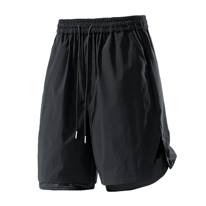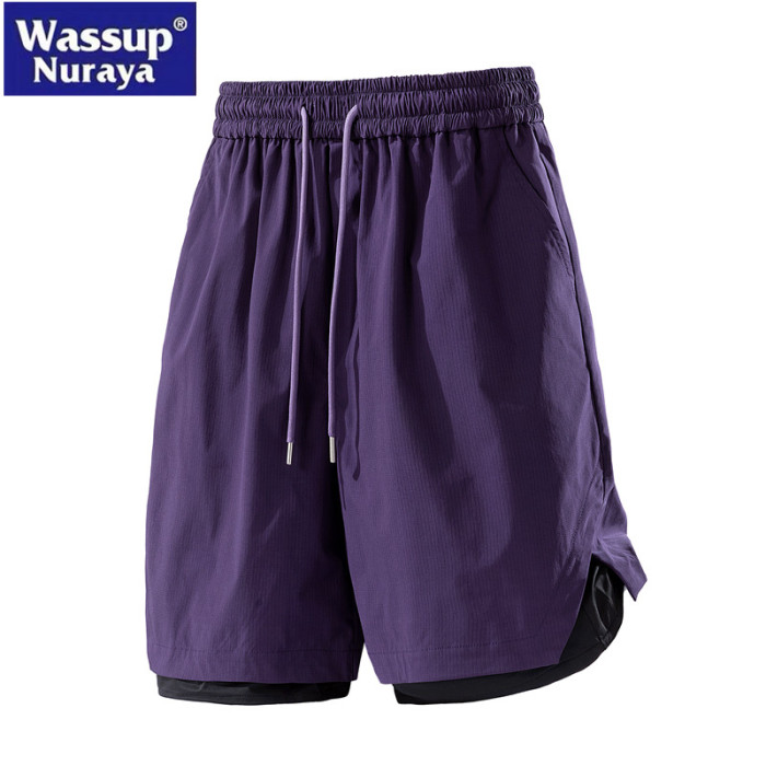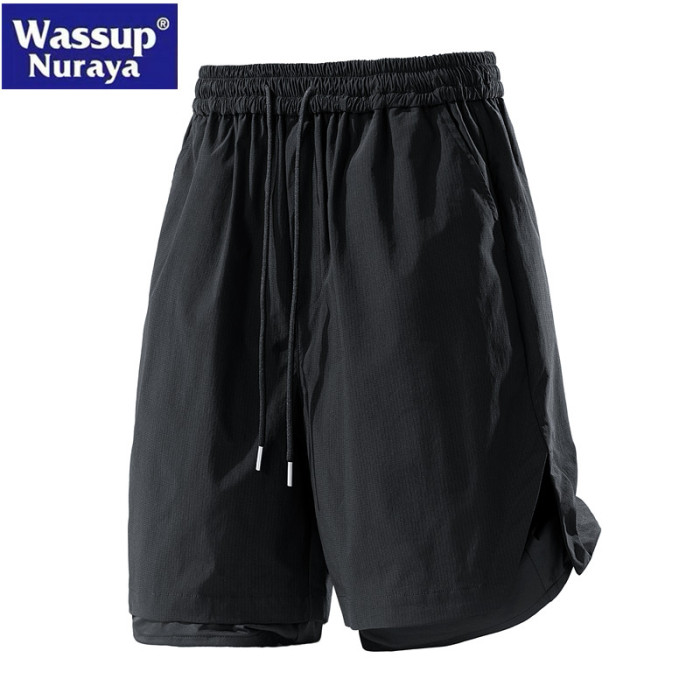 WASSUP Nuraya潮牌夏季休閒直筒雙層假兩件運動短褲速乾五分褲男