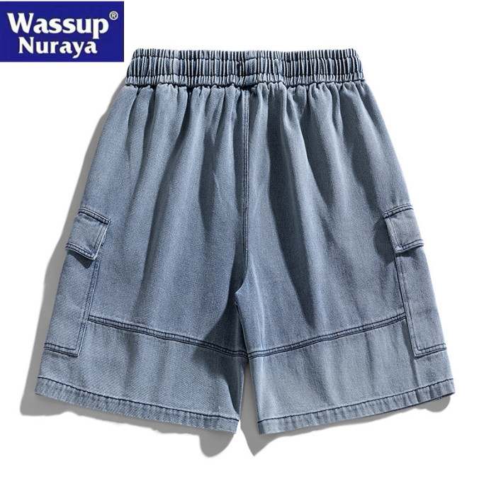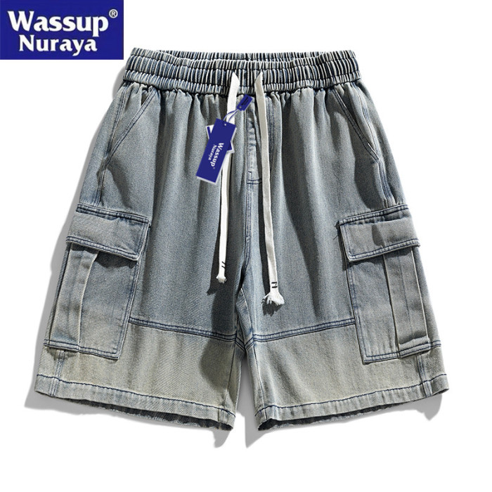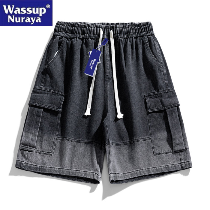 WASSUP Nuraya潮牌漸變牛仔短褲男夏季美式寬松休閒工裝五分褲子
