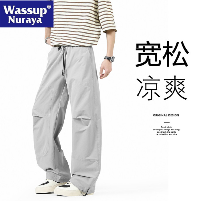 WASSUP NURAYA工裝褲男2025新款春夏寬松彎刀褲痞帥濶腿休閒褲子