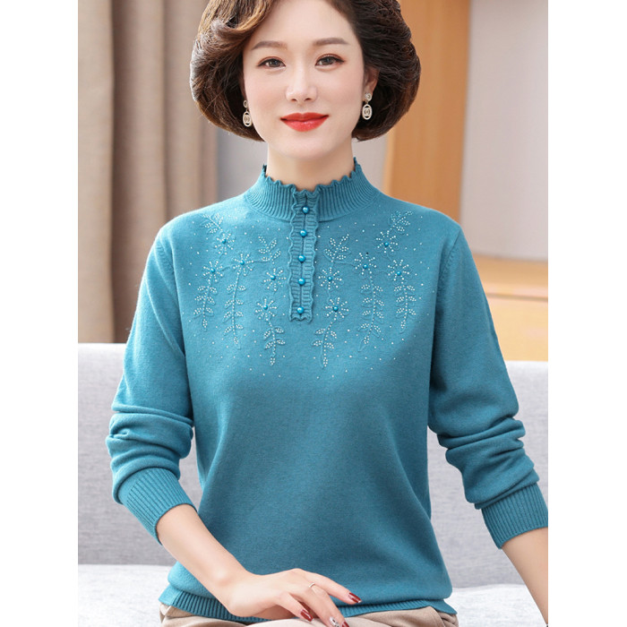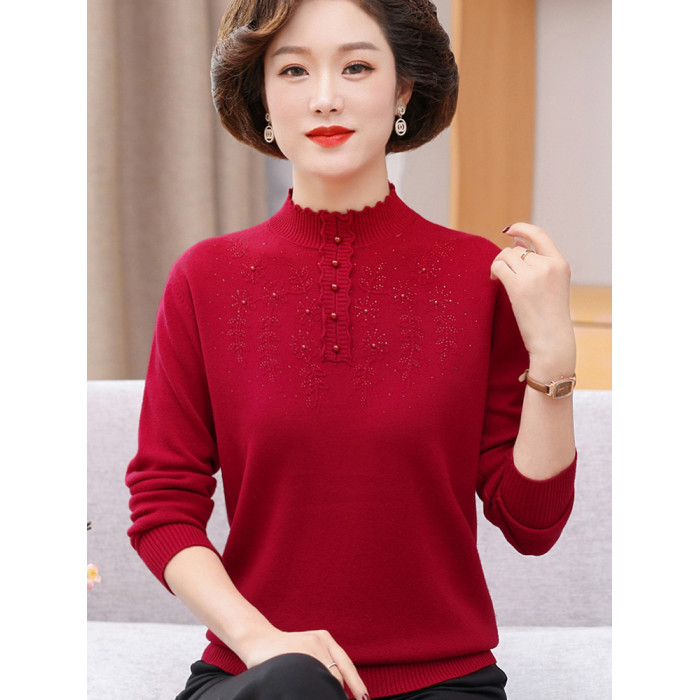 中年媽媽秋裝洋氣高領上衣40嵗50毛衣中老年女秋冬時尚毛衣打底衫