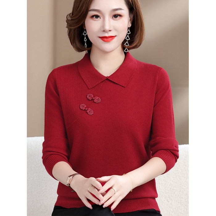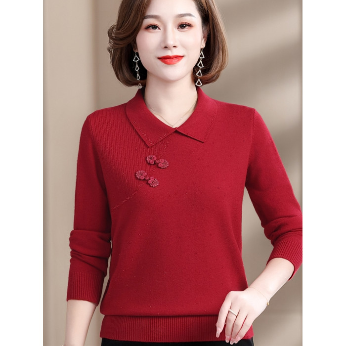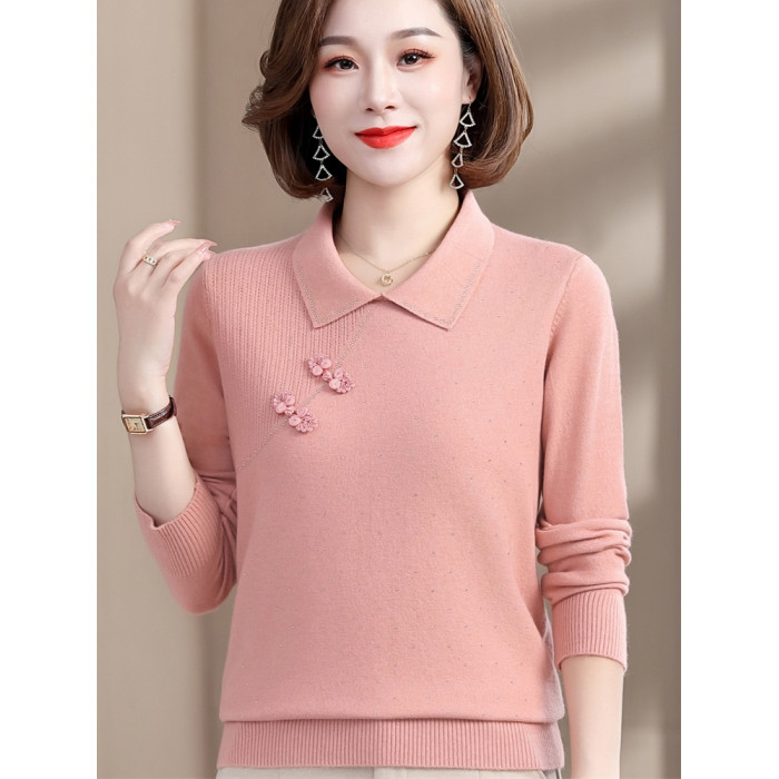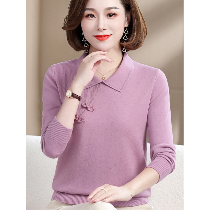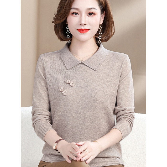 中老年新款媽媽秋裝純色薄款打底衫時尚老人上衣長袖針織衫毛衣女