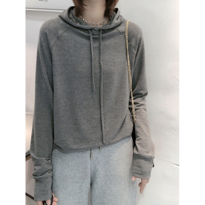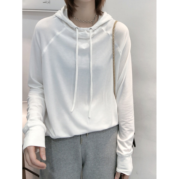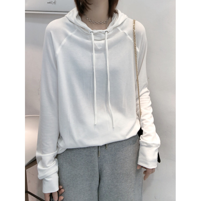 歐洲站2025春季新款百搭純色長袖打底衫女連帽衛衣薄款外穿上衣潮