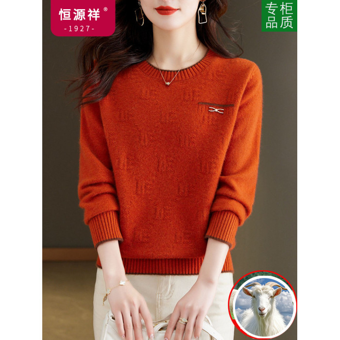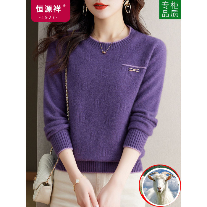 恒源祥低領羊毛絨衫女秋冬2024年新款圓領加厚毛衣洋氣保暖打底衫