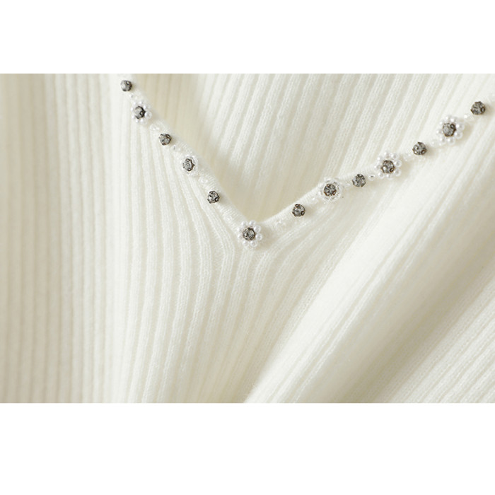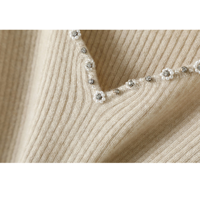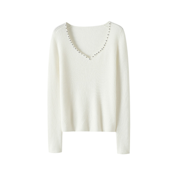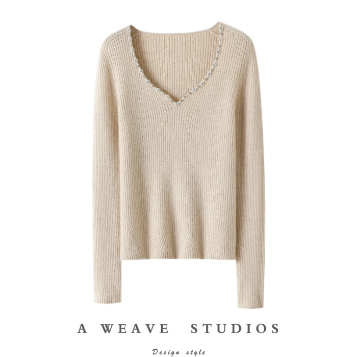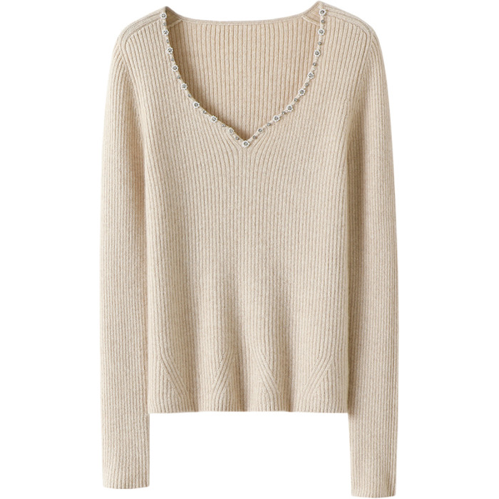 上身太好看了!手工縫鑽V領山羊絨衫女純羊絨毛衣針織打底衫秋冬