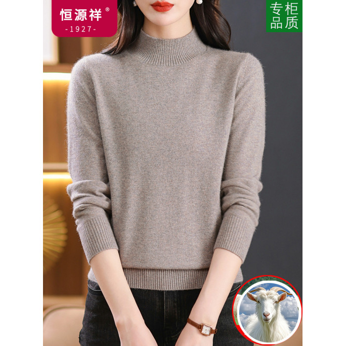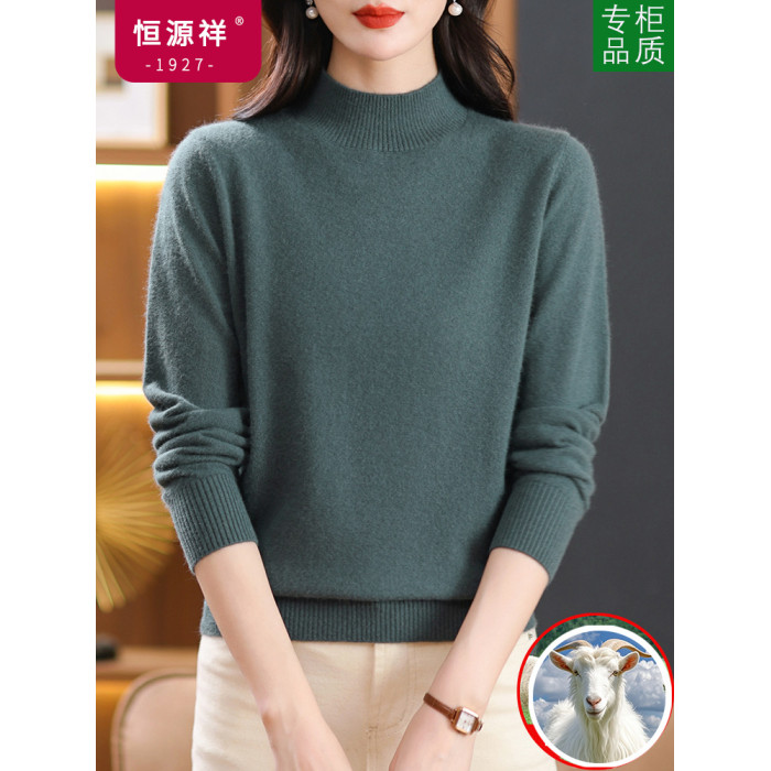 恒源祥羊毛絨衫女秋冬2024新款時尚羊毛半高領毛衣洋氣內搭打底衫