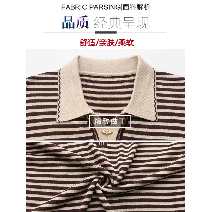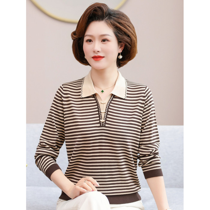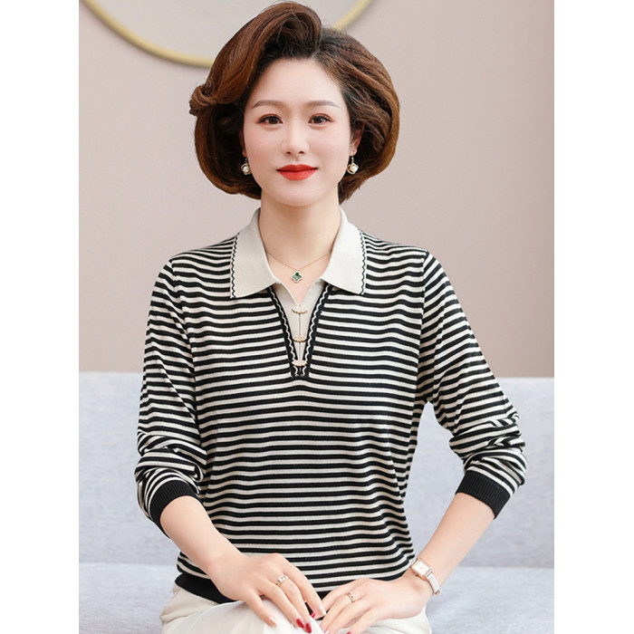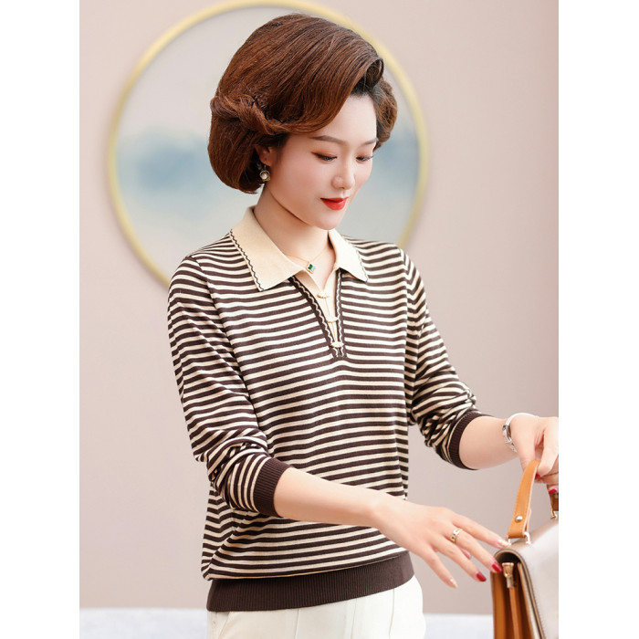 媽媽款秋裝翻領上衣 中年女長袖T恤打底衫50嵗60中老年人春秋套裝