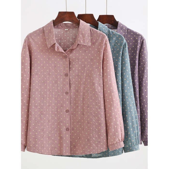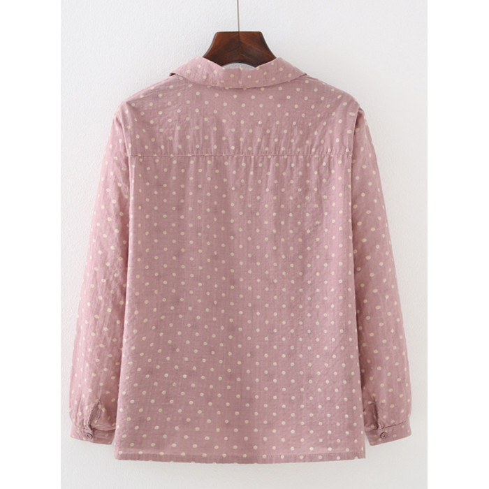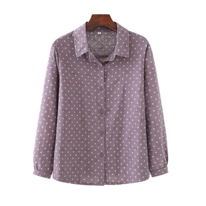中老人純棉波點襯衫老太太夏季薄款長袖打底衫媽媽夏裝圓點子上衣