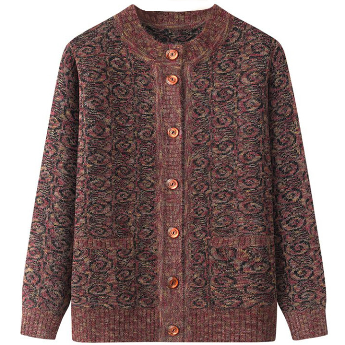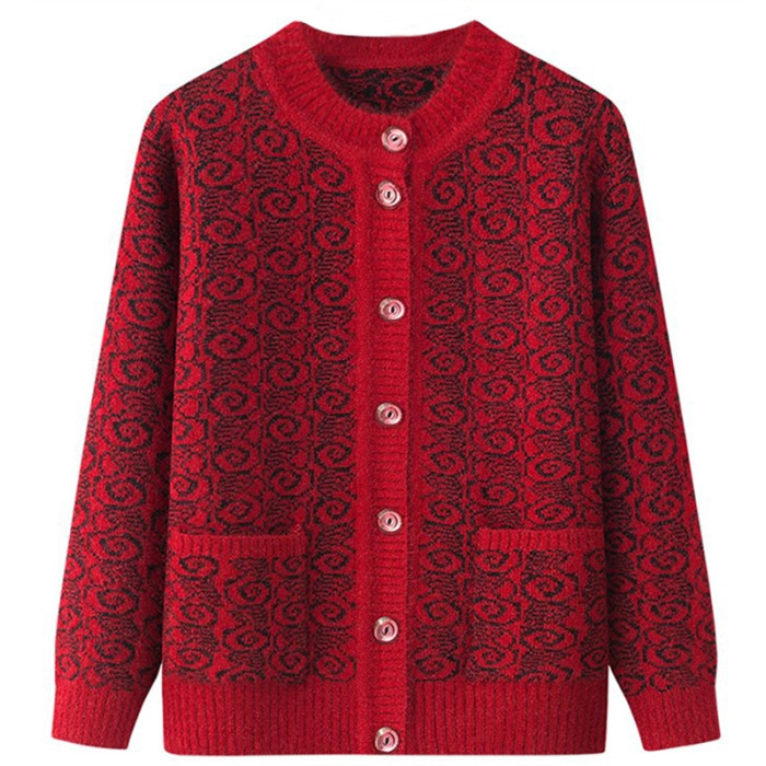 媽媽裝秋裝毛衣中老年人女裝開衫外套圓領奶奶春秋款針織衫打底衫