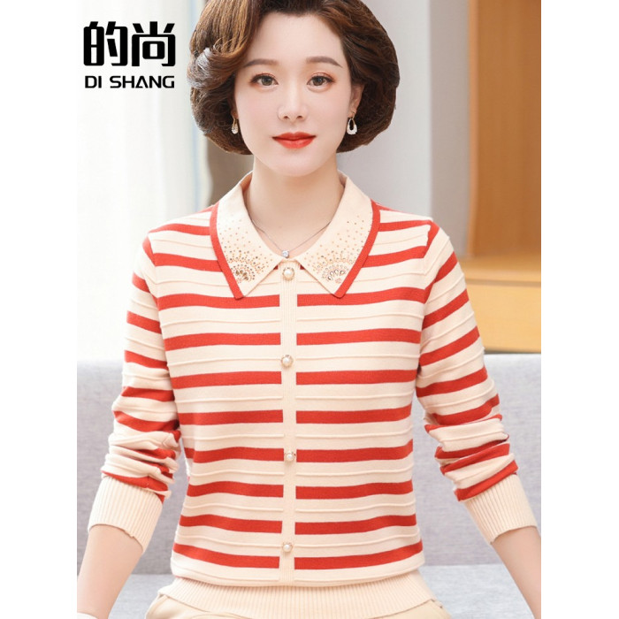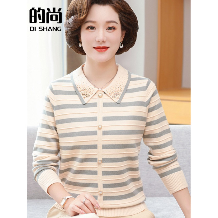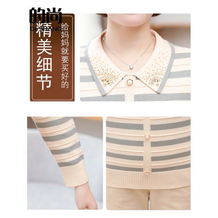 媽媽秋裝洋氣針織打底衫中年婦女長袖翻領上衣服中老年春秋兩件套