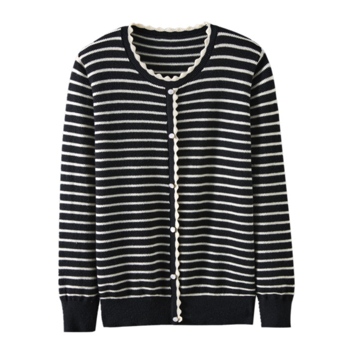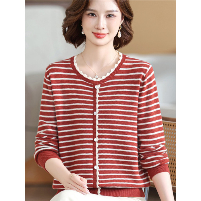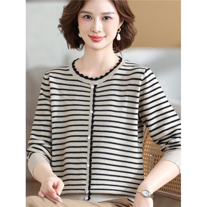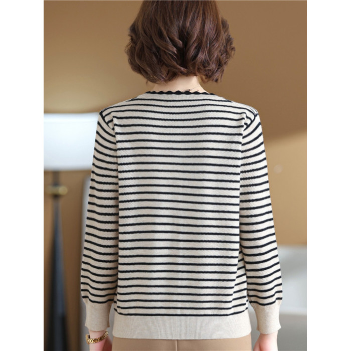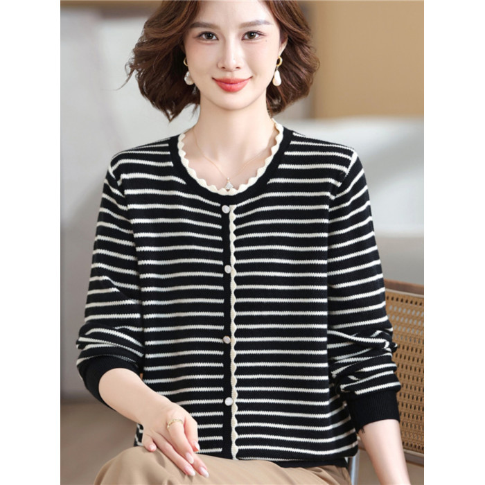 媽媽春裝針織小衫洋氣條紋上衣中老年女裝早秋長袖打底衫2025新款