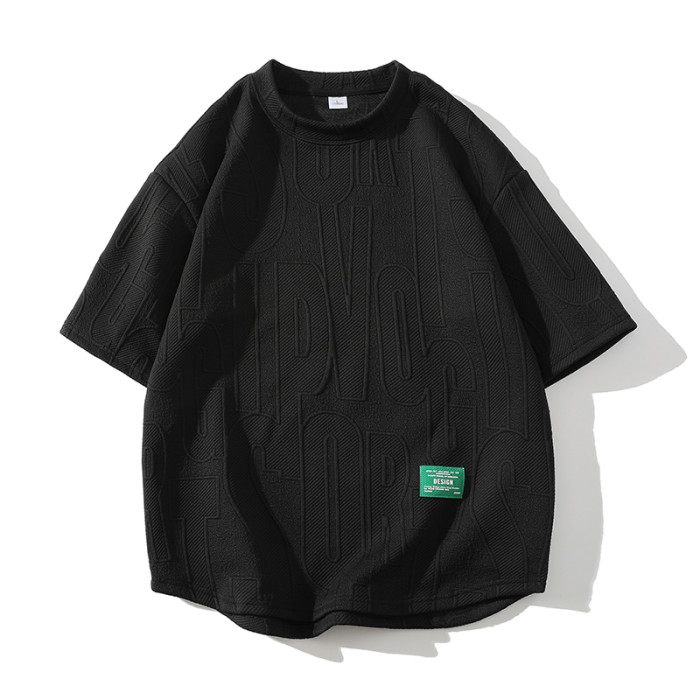 WASSUP NURAYA提花短袖t恤男夏季潮流休閒寬松慵懶風黑色情侶上衣