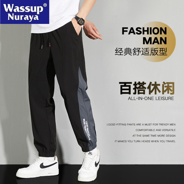WASSUP NURAYA褲子男士寬松冰絲速乾束腳春夏透氣薄款運動休閒褲