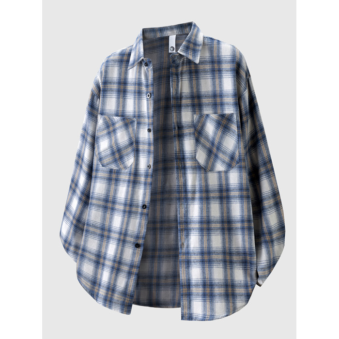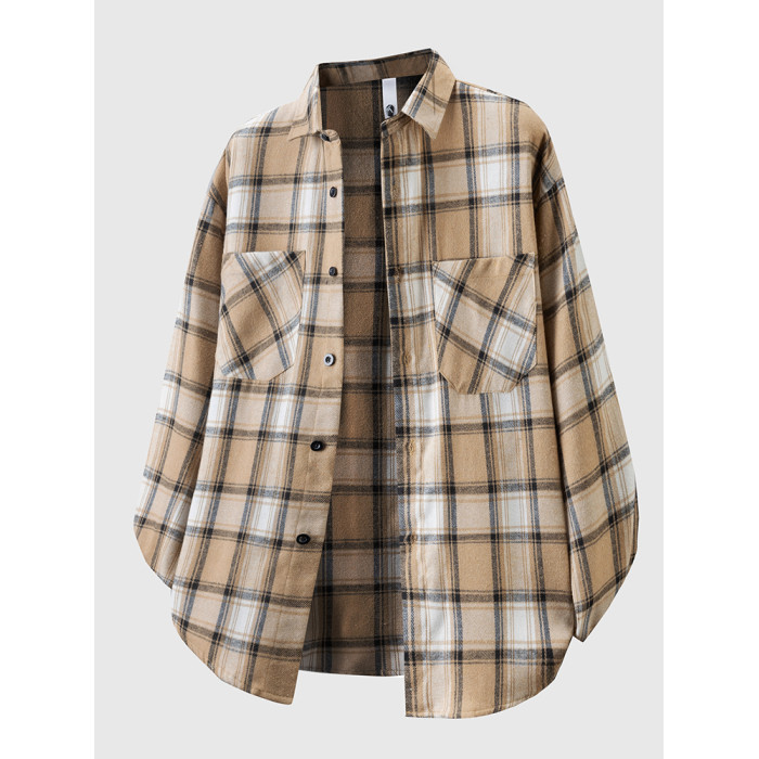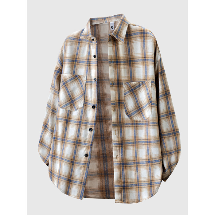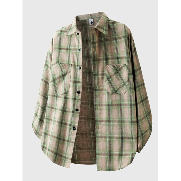 WASSUP NURAYA日系復古格子長袖襯衫男款春秋季痞帥休閒襯衣外套
