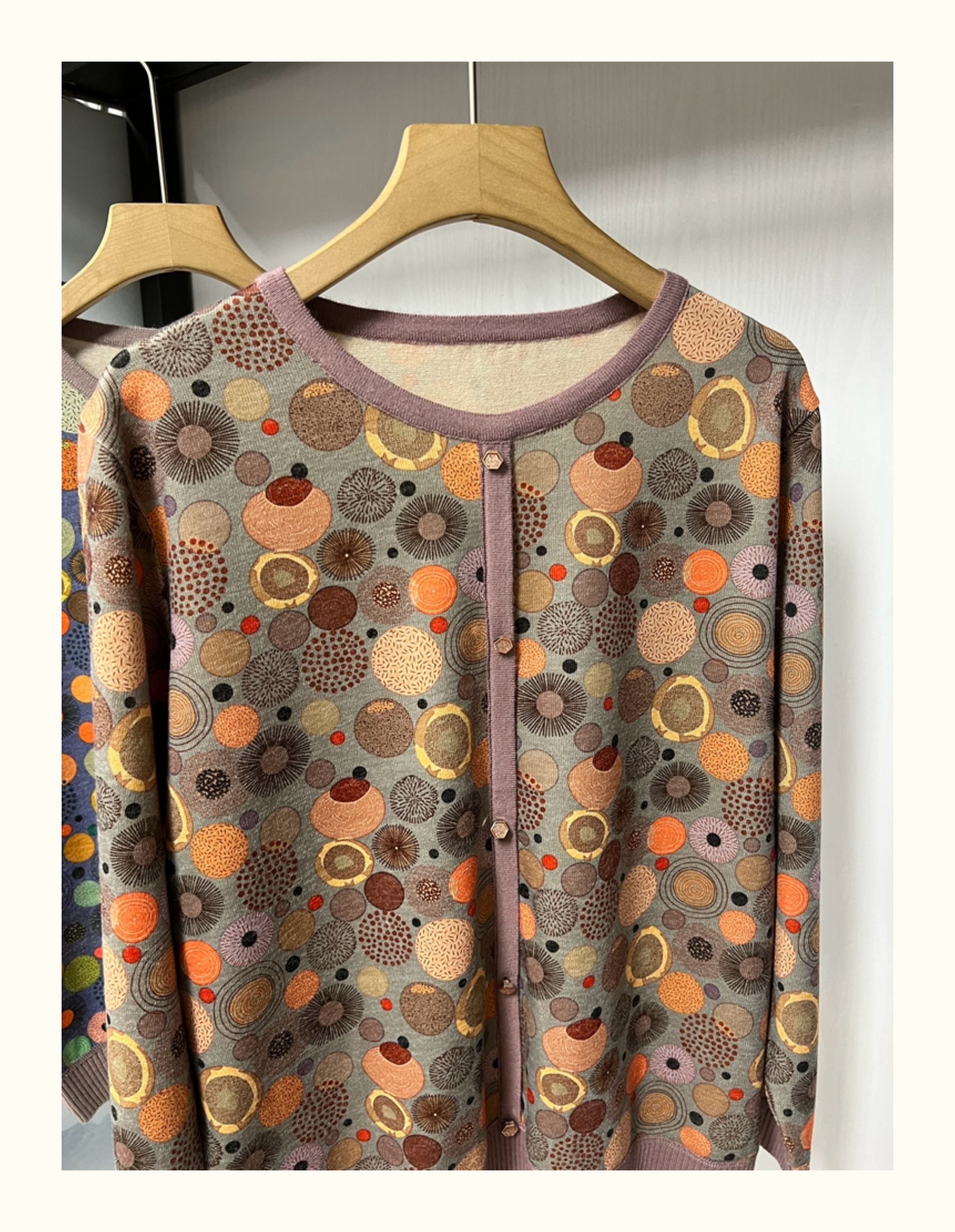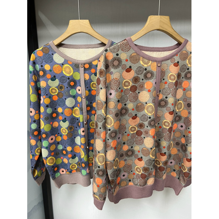 春秋新品薄款寬松大碼氣質媽媽裝羊毛衫花色中老年長袖打底衫毛衣