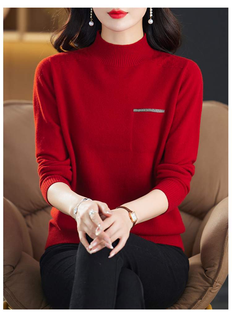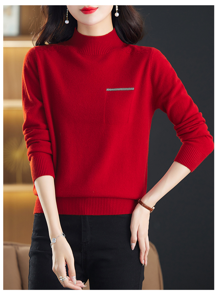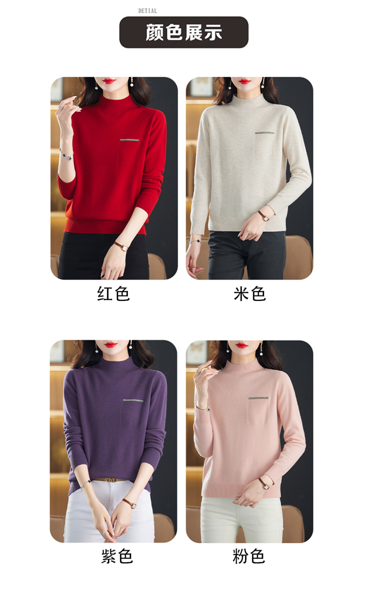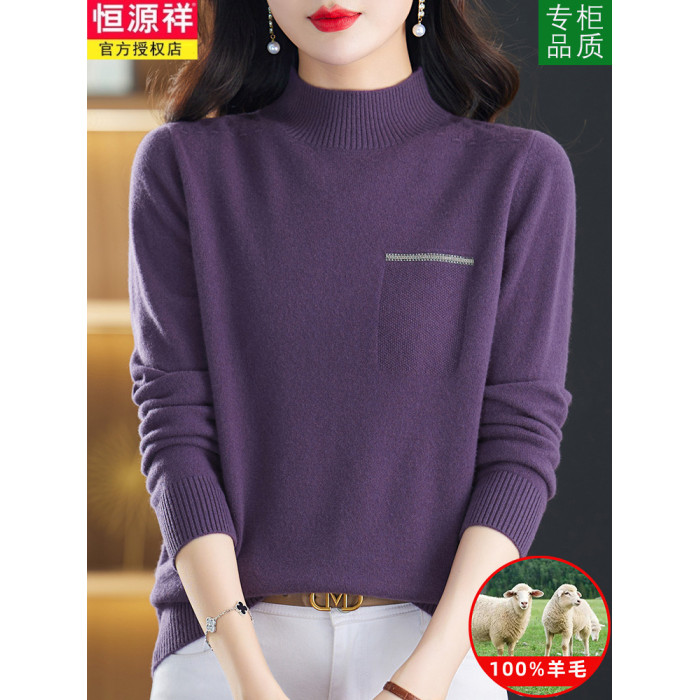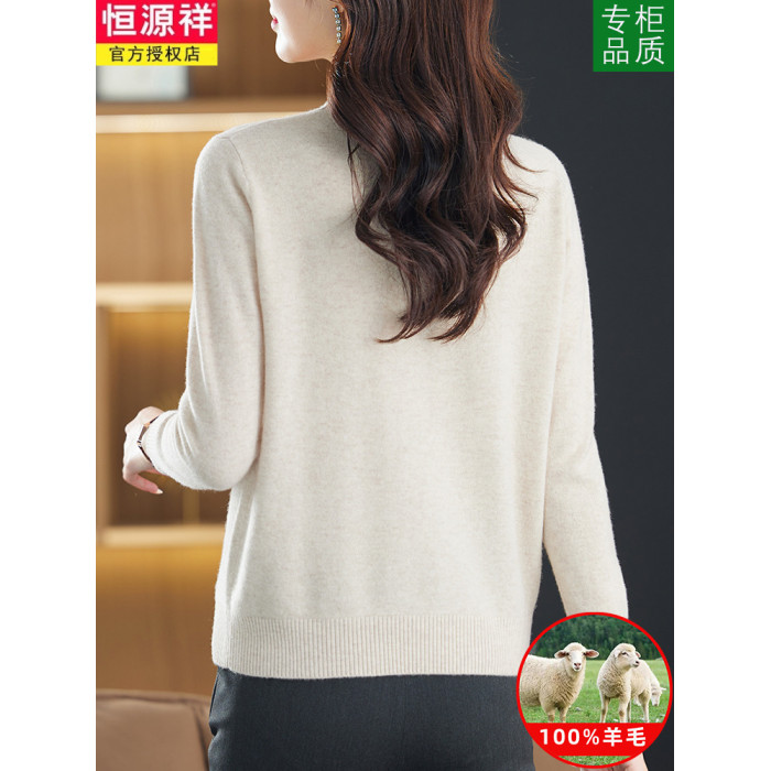 恒源祥羊毛衫女100純羊毛秋冬半高領毛衣短款寬松百搭針織打底衫