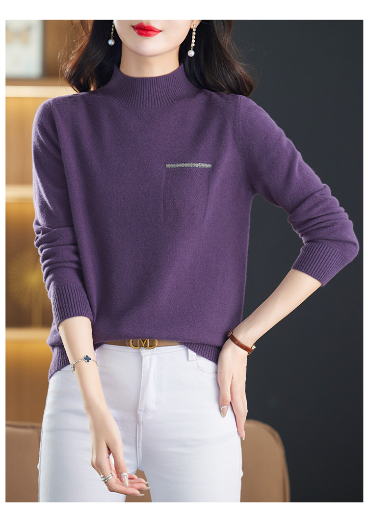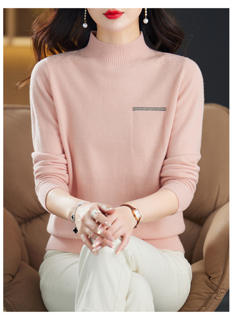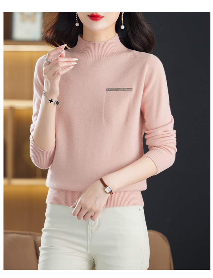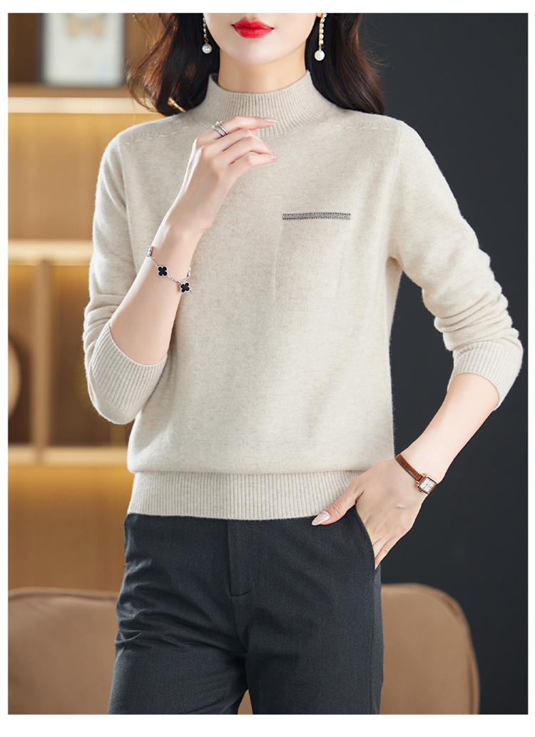 恒源祥羊毛衫女100純羊毛秋冬半高領毛衣短款寬松百搭針織打底衫