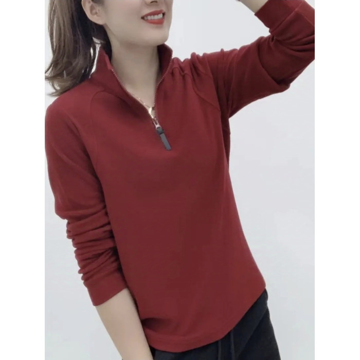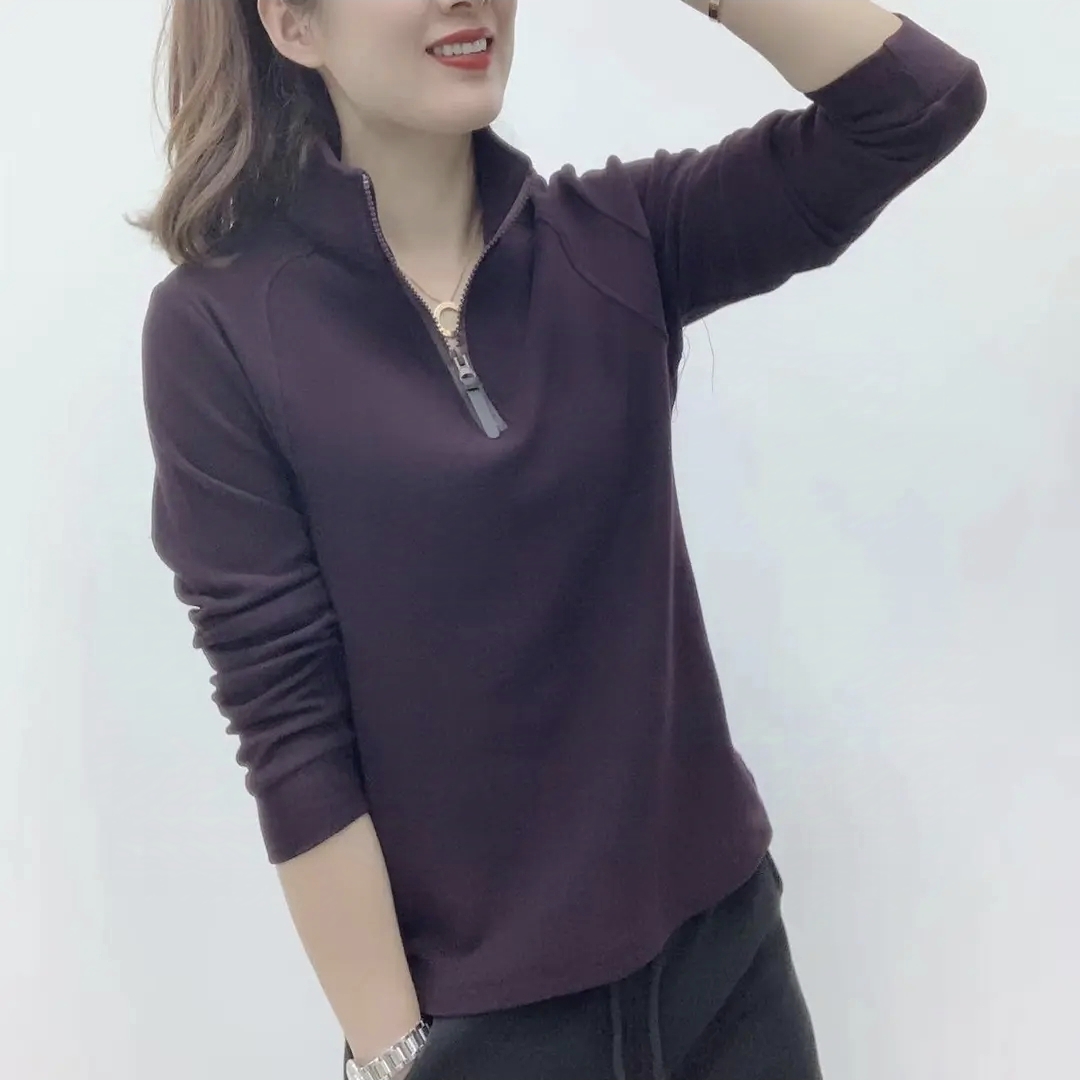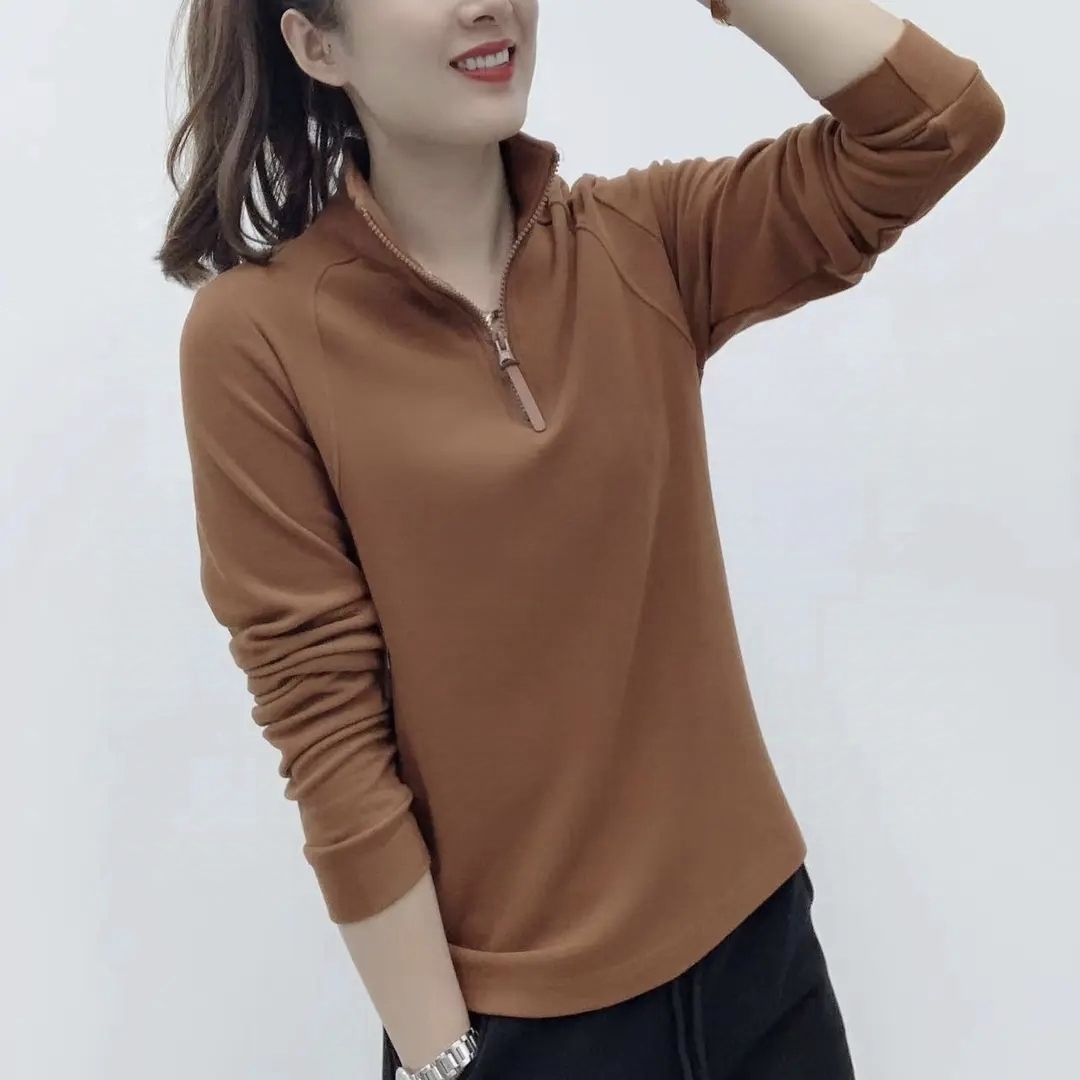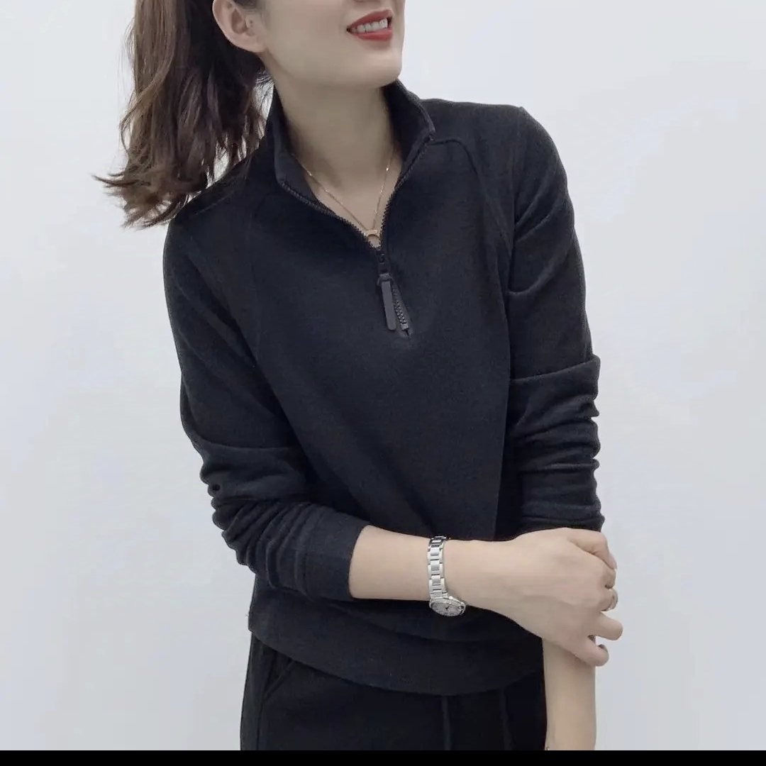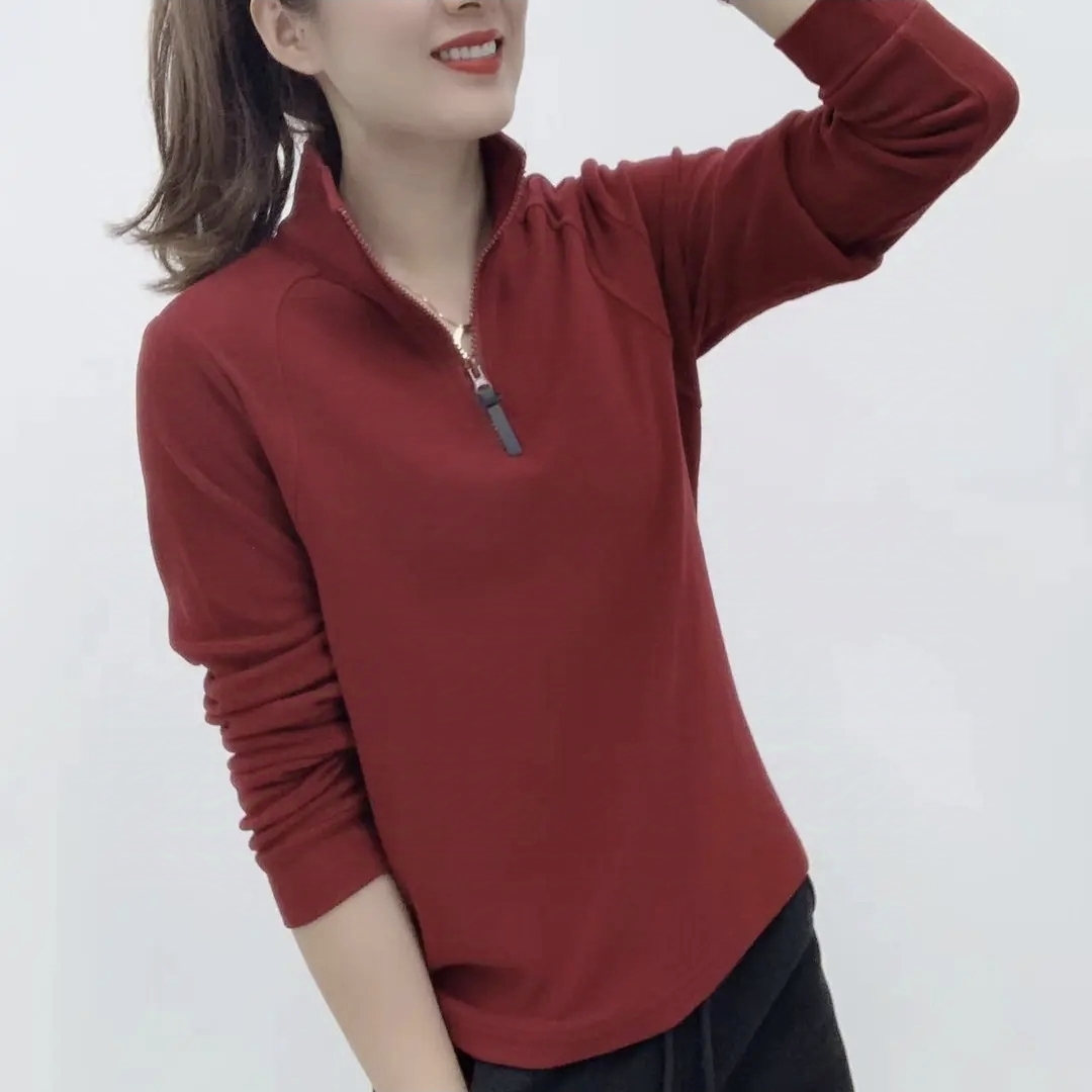 2025春秋新款加厚保暖立領雙面德絨打底衫女百搭長袖半拉鍊上衣