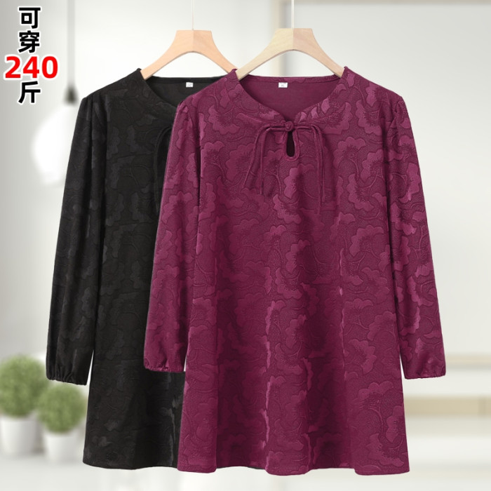 胖媽媽春裝遮肚子加肥加大碼洋氣打底衫長袖中老年春秋特體上衣女