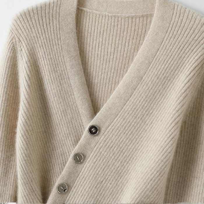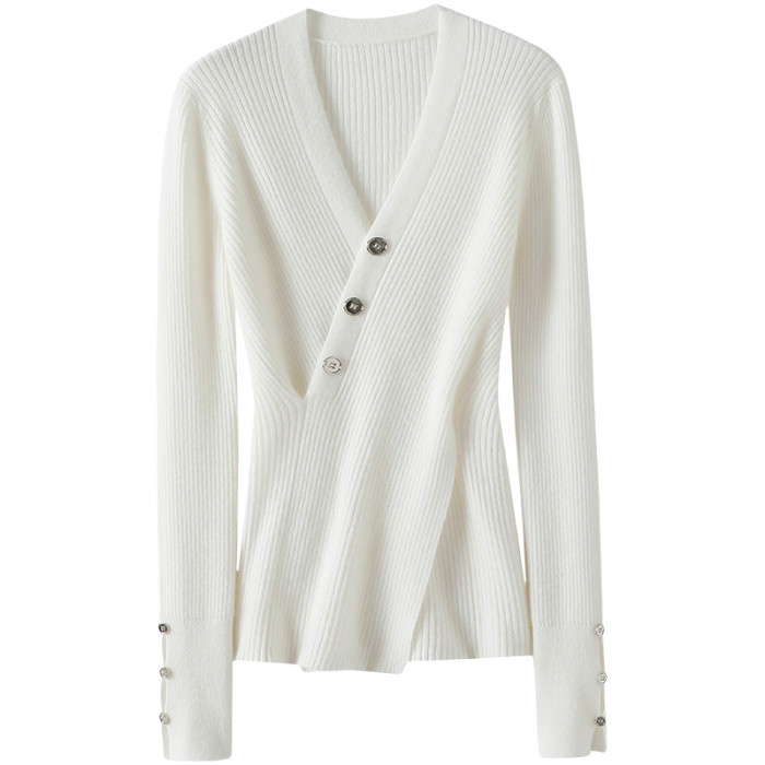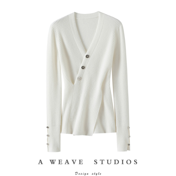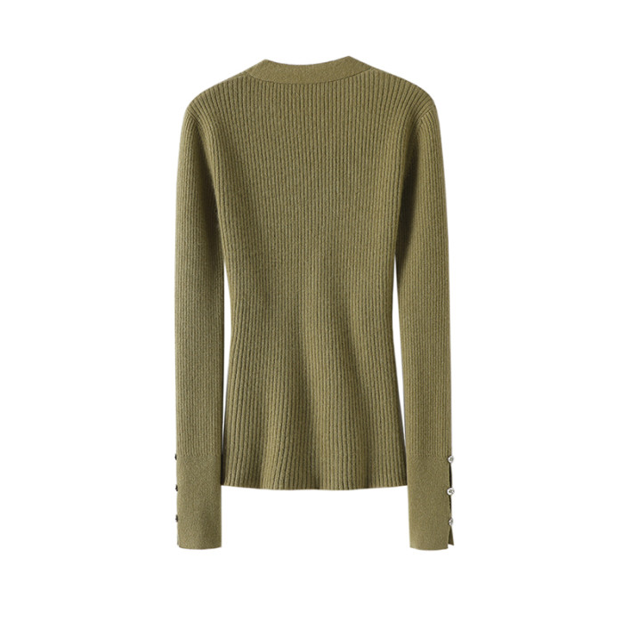 啓超日常精緻風~V領100%純山羊絨衫女純羊絨毛衣針織衫修身打底衫