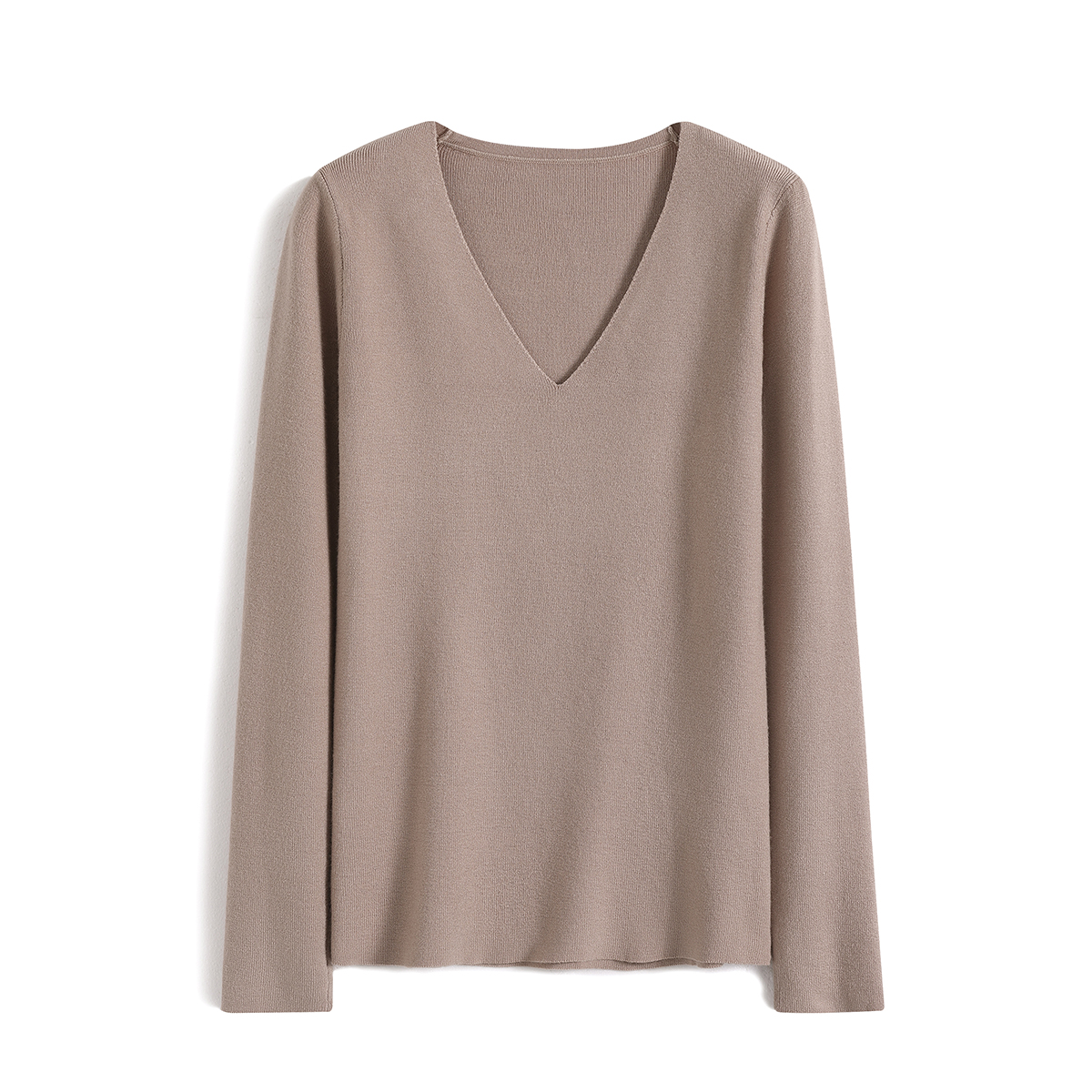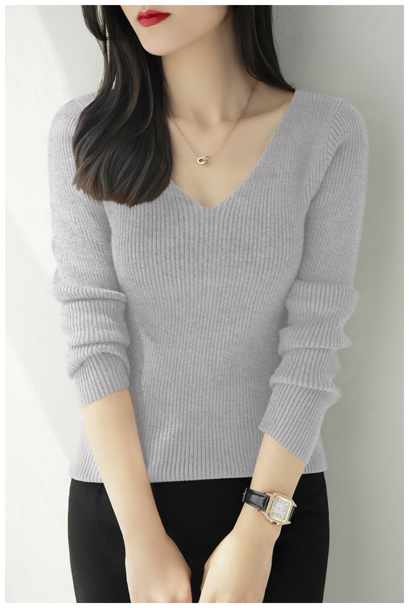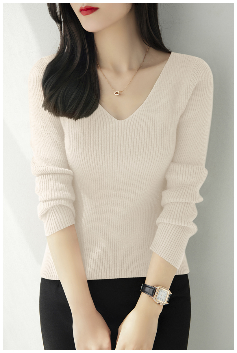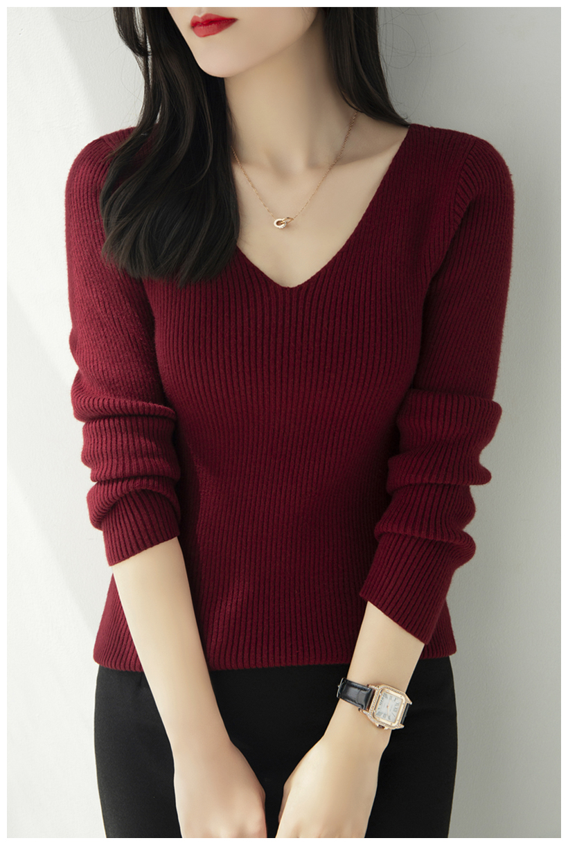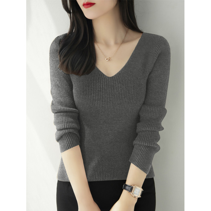 春秋高級感v領簡約長袖內搭打底衫毛衣時尚新款百搭修身針織衫女