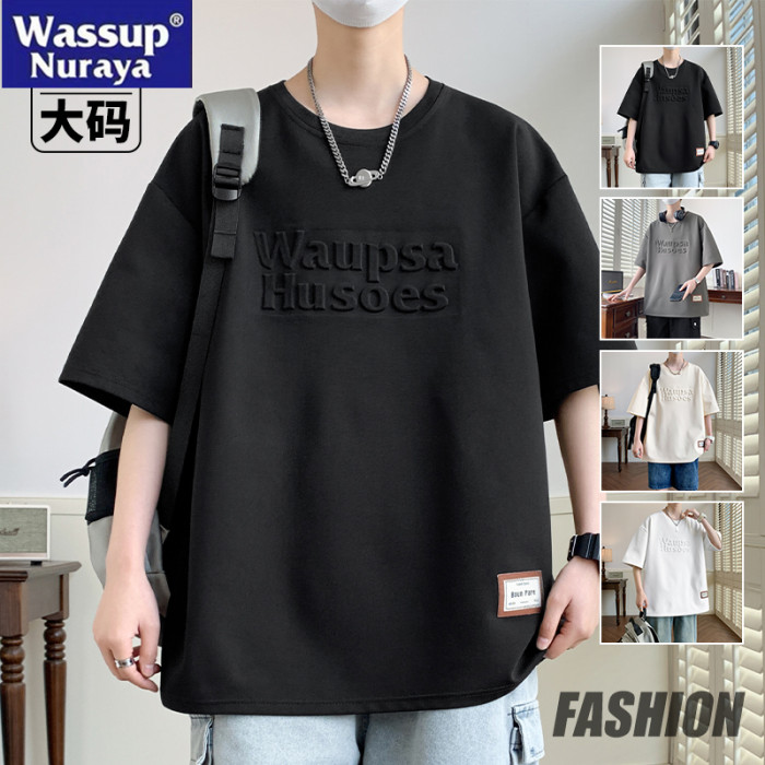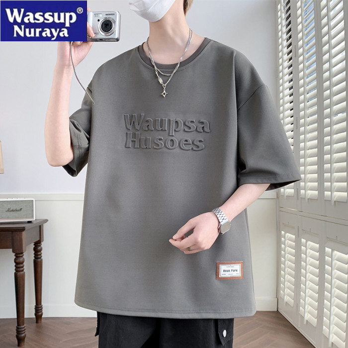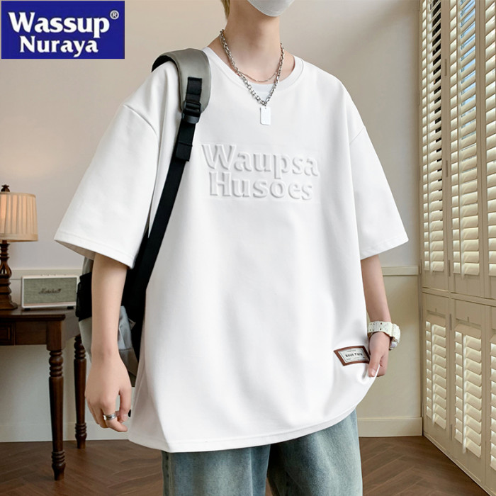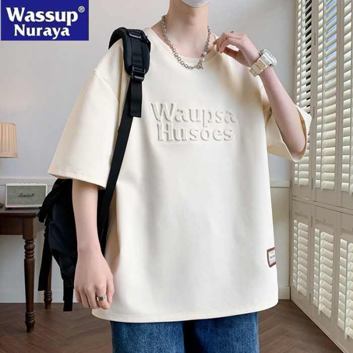 WASSUP NURAYA夏季美式復古t恤男加肥加大碼寬松鋼印短袖半袖體恤