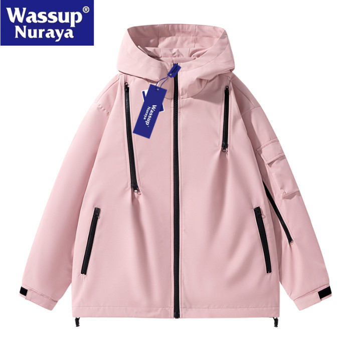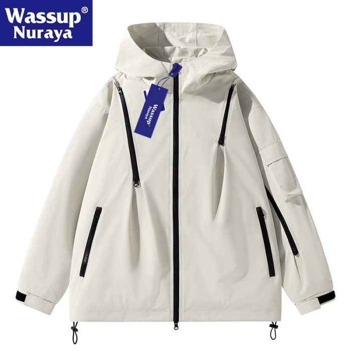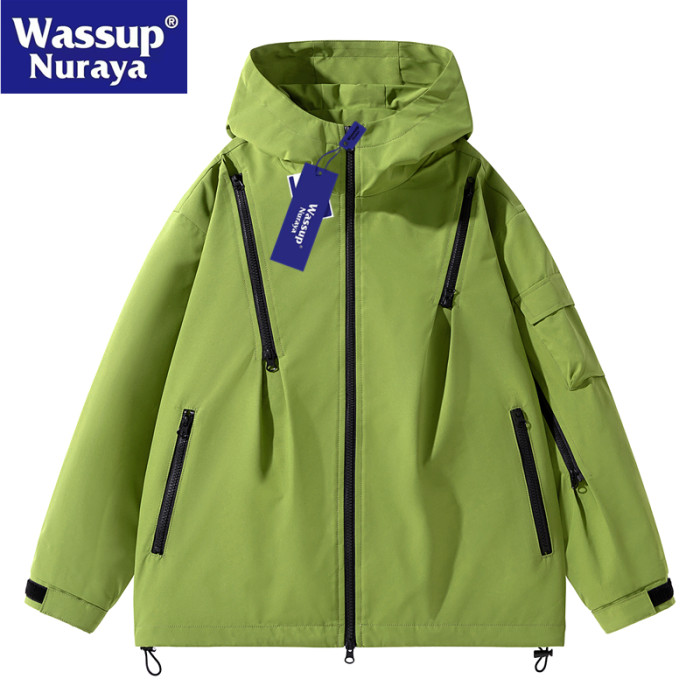 WASSUP Nuraya潮牌機能連帽沖鋒衣男2024春戶外飛行工裝夾克外套