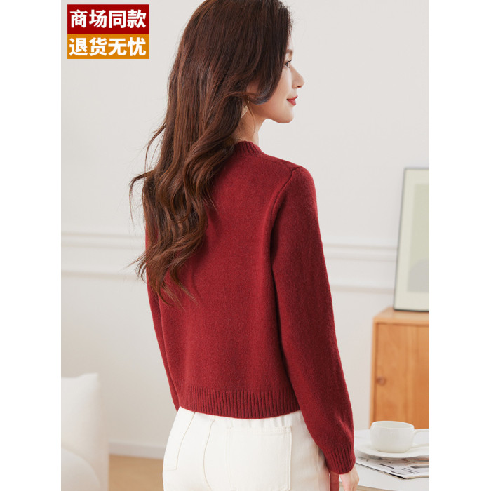 高級感灰色毛衣女款2025新款冬季洋氣爆款小個子短羊毛打底衫內搭