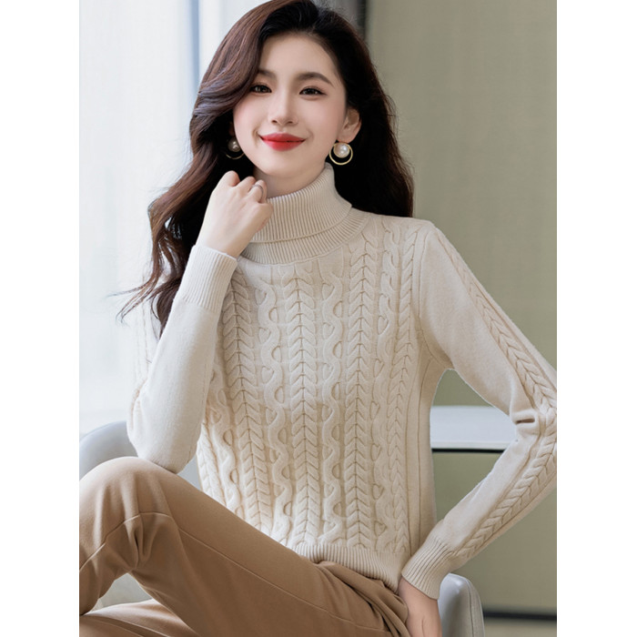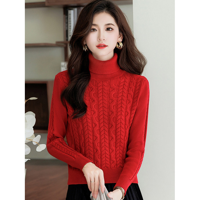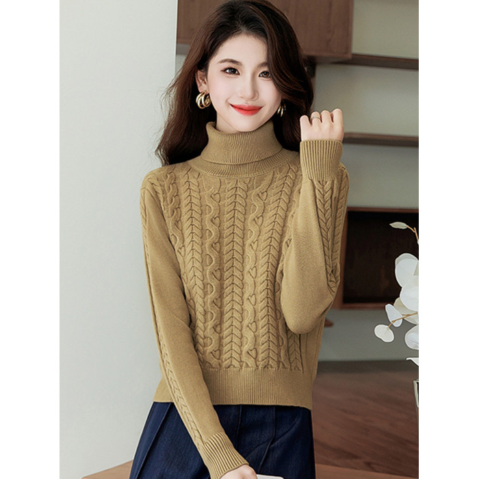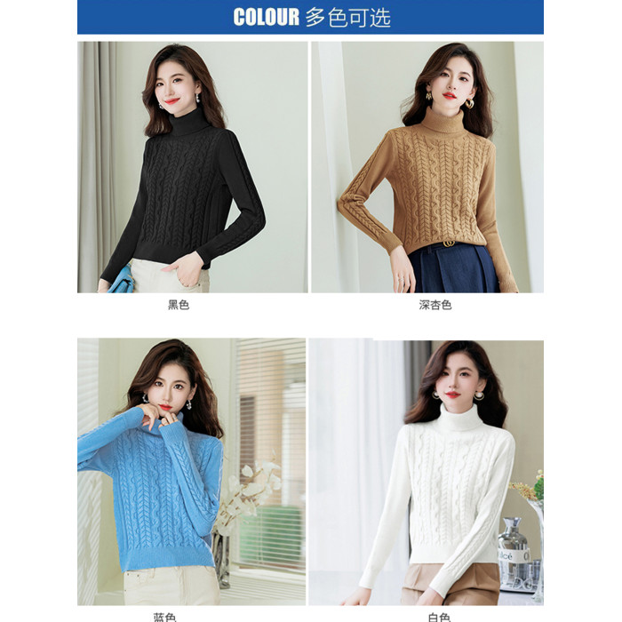 麻花高領短款毛衣女冬季加厚套頭針織衫小個子高腰修身內搭打底衫