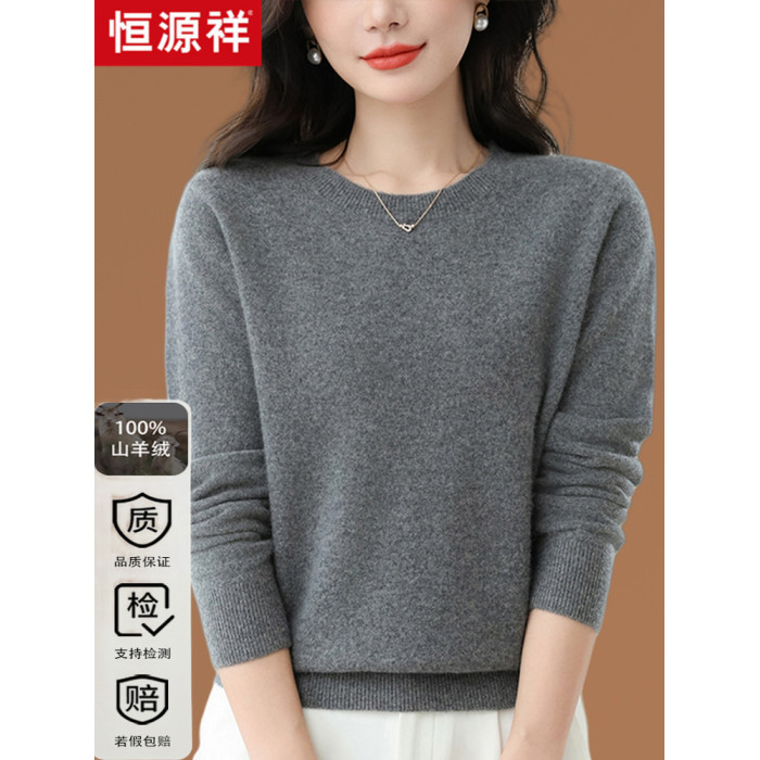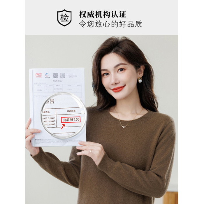 恒源祥品牌高級100山羊絨衫秋冬媽媽女裝圓領內搭軟糯毛衣打底衫