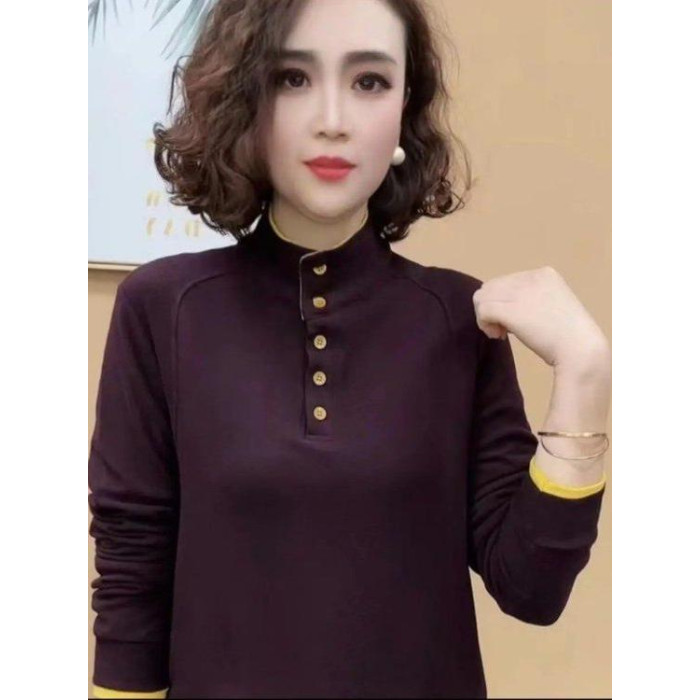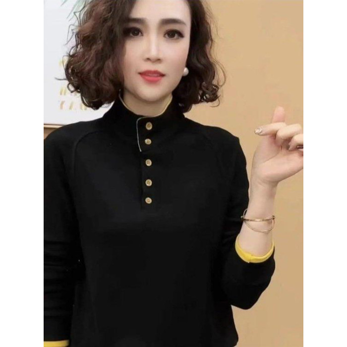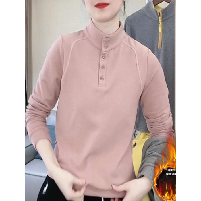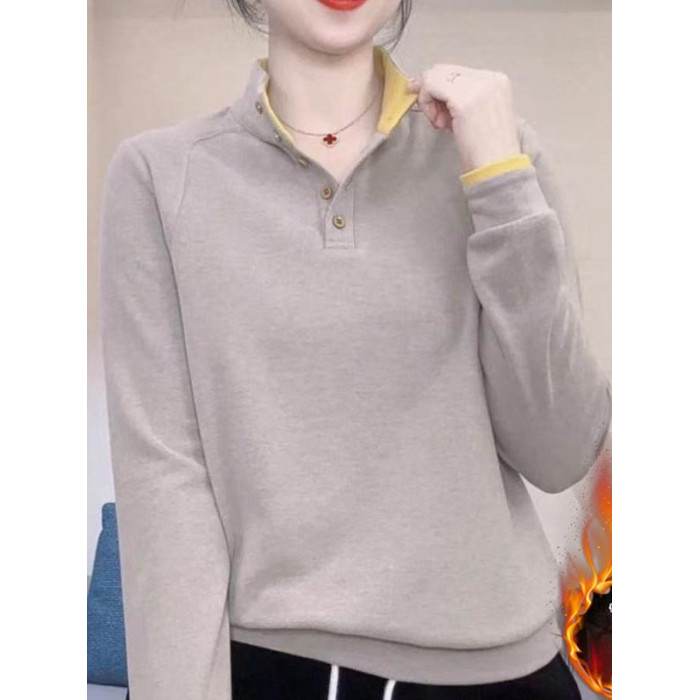 時尚女裝撞色立領雙面絨衛衣2024秋冬洋氣一體絨加絨保暖打底衫女