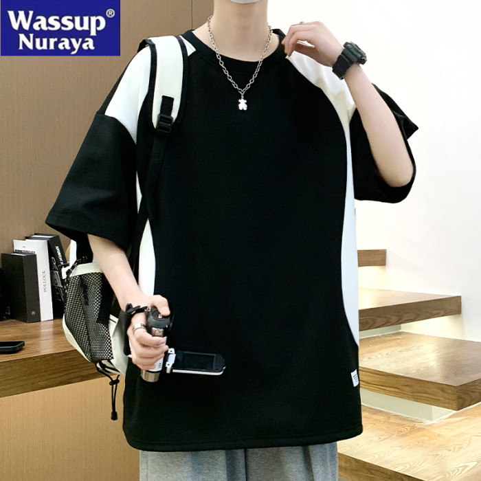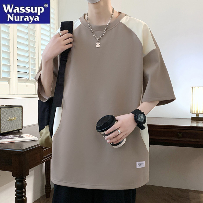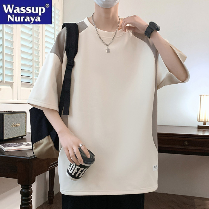 WASSUP NURAYA短袖t恤男夏季薄潮牌寬松拼色百搭大碼半袖青年上衣