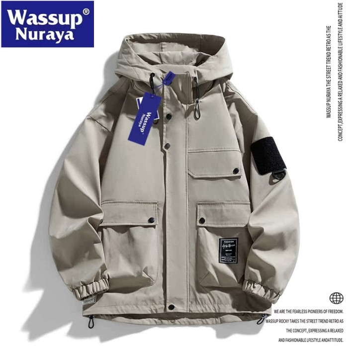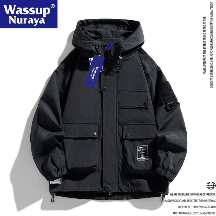 WASSUP Nuraya潮牌2024年新款日系工裝戶外連帽沖鋒衣男外套夾克